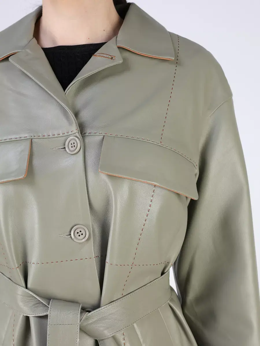 Каждая деталь этой кожаной куртки выполнена с особым вниманием к качеству материалов. Прямой - свободный крой и спущенная линия плеча позволяет чувствовать себя комфортно в любой ситуации. Кожаный ремень, хлястики на рукаве и декоративная строчка добавляют уникальности этому предмету верхней одежды. Застежка на пуговицах обеспечивает надежную защиту от ветра, а прорезные карманы делают куртку практичной.