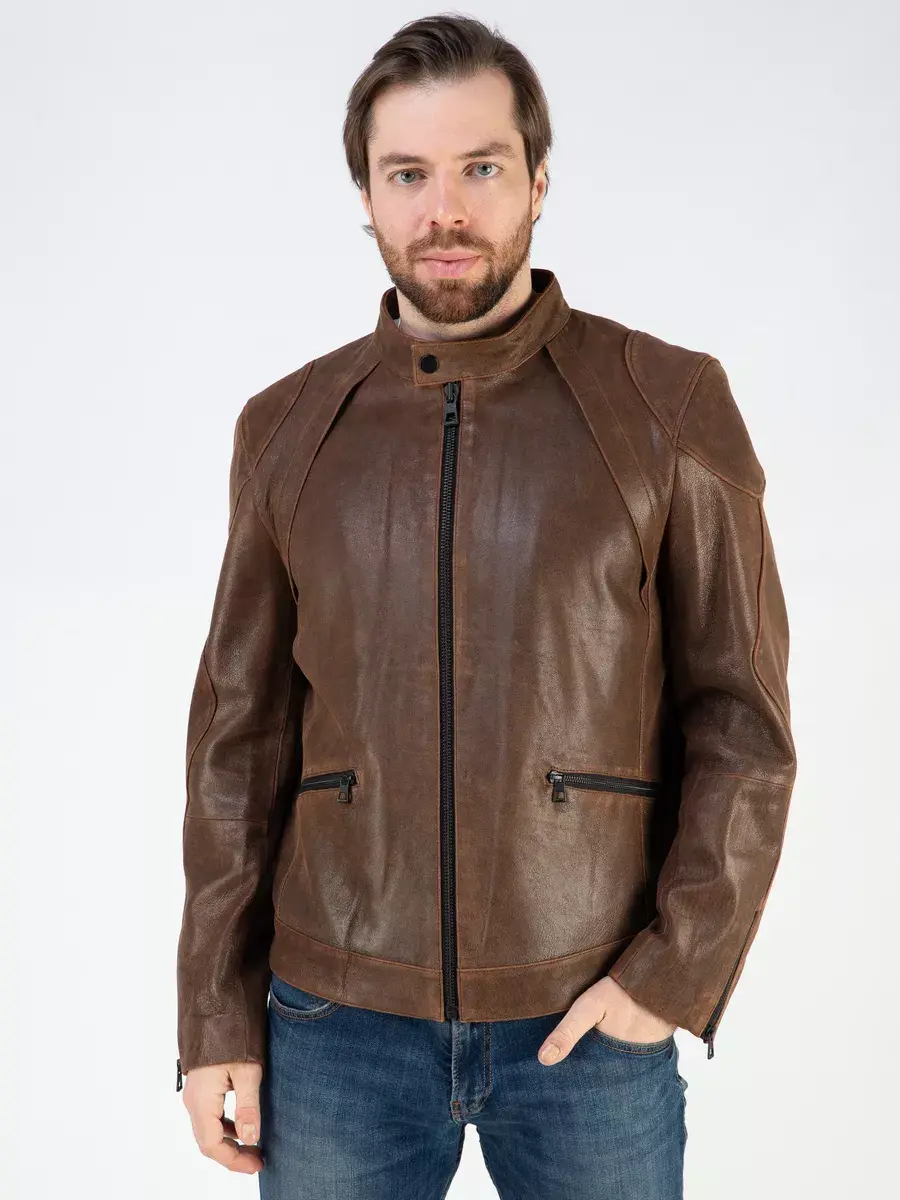 Каждая деталь этой кожаной куртки выполнена с особым вниманием к качеству материалов. Классический воротник стойка на кнопке, фактура кожи, вставки, молнии на рукавах придают куртке уникальность и изысканность, идеально впишется в любой стиль и дополнит солидный и брутальный образ мужчины или парня подростка, независимо от возраста. Застежка на молнии обеспечивает легкость и удобство в использовании, а прорезные карманы на молниях дополнительно увеличивают функциональность и практичность куртки.