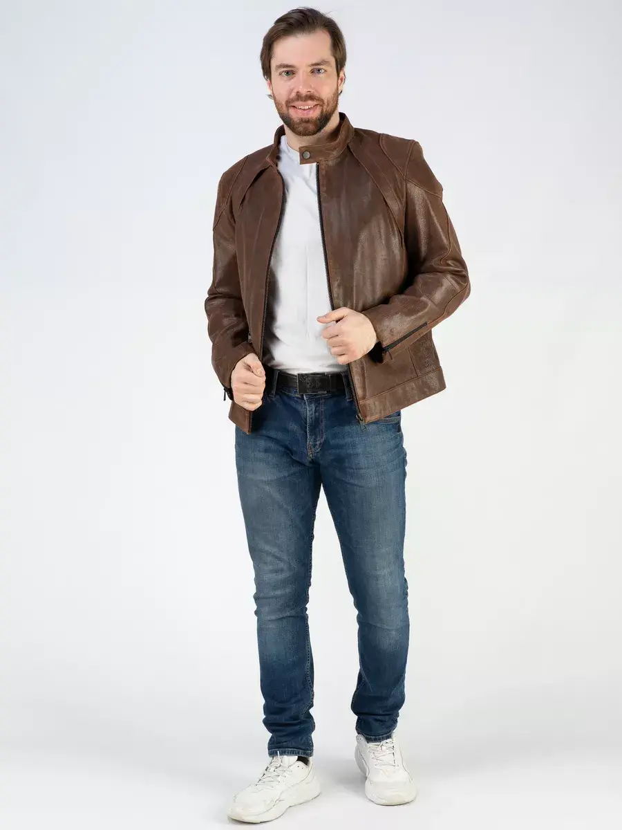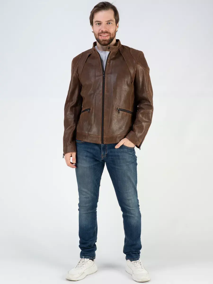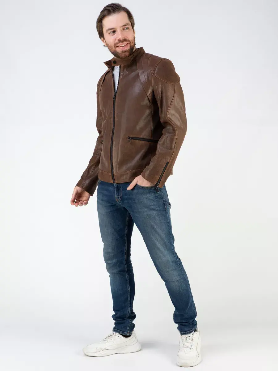 Куртка мужская кожаная демисезонная из натуральной кожи прекрасно будет смотреться с кроссовками и спортивным стилем, с байкерский стилем, впишется практически в любой стиль.