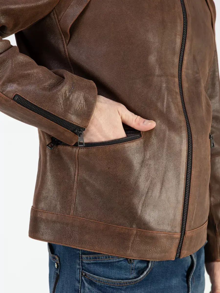 молнией с рукавах, куртка байкерская, эффект потертости и старения