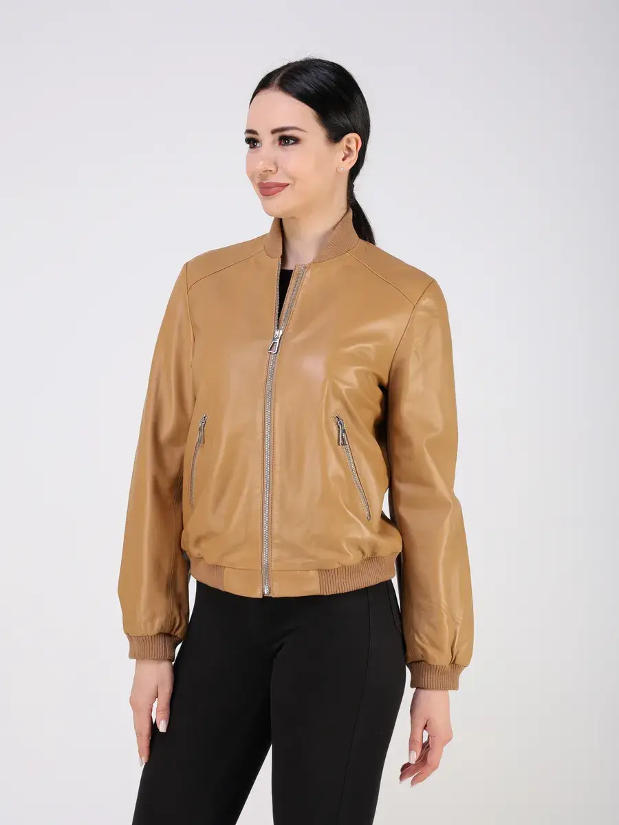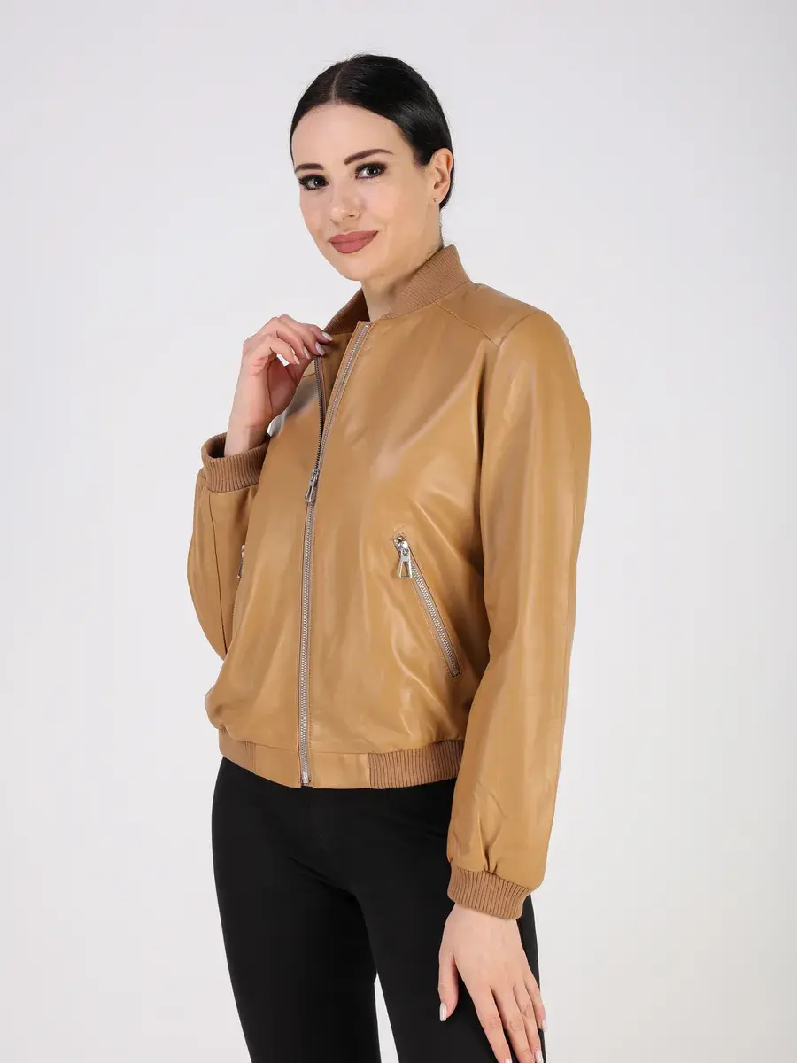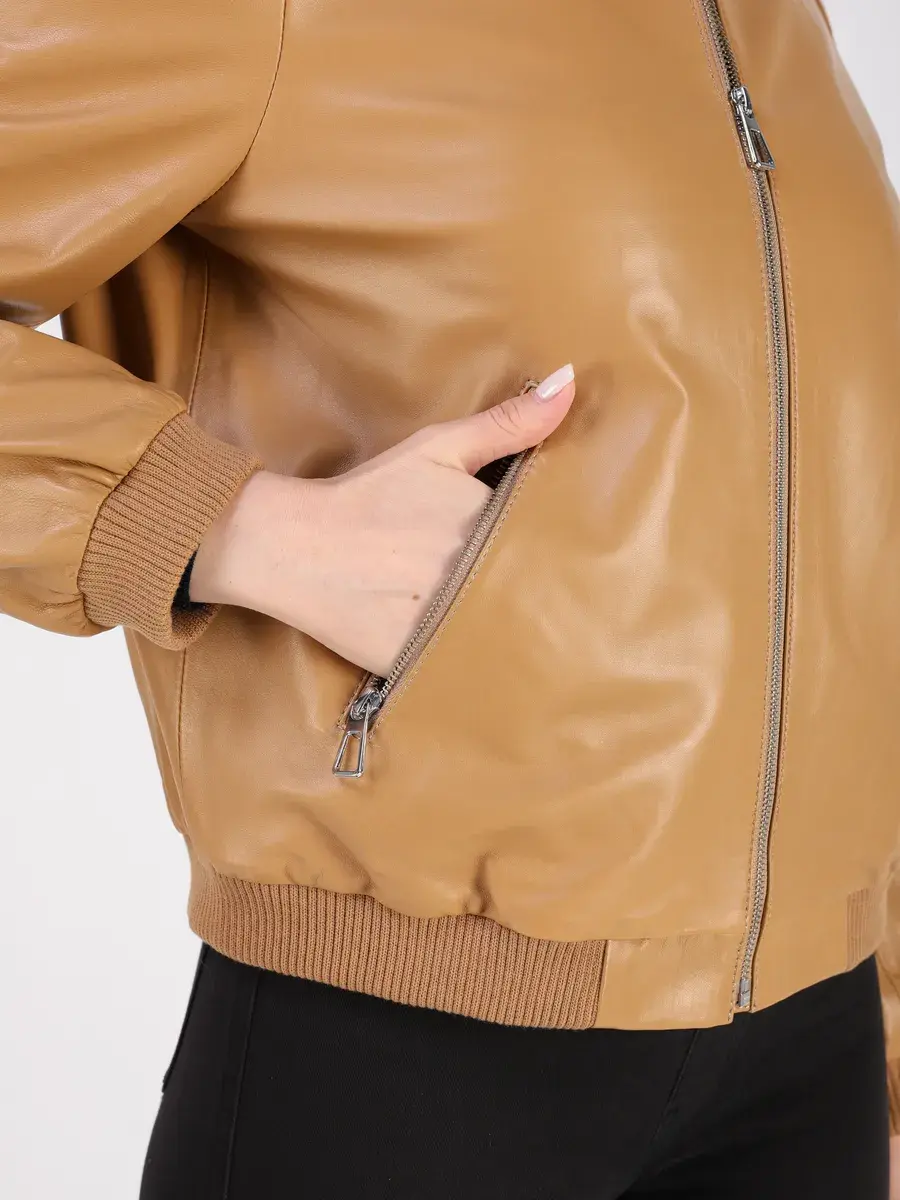 Куртка осенняя женская, бомбер женский изготовлена из высококачественной кожи ягненка, которая отличается высокой прочностью и долговечностью, сохраняя при этом свою мягкость и эластичность, в любое время года, осенью и весной.