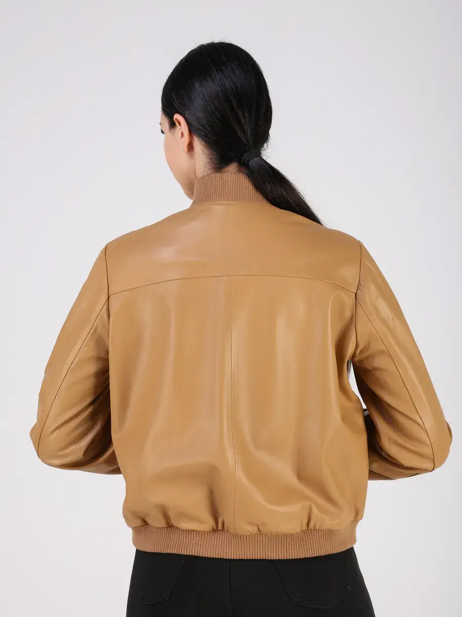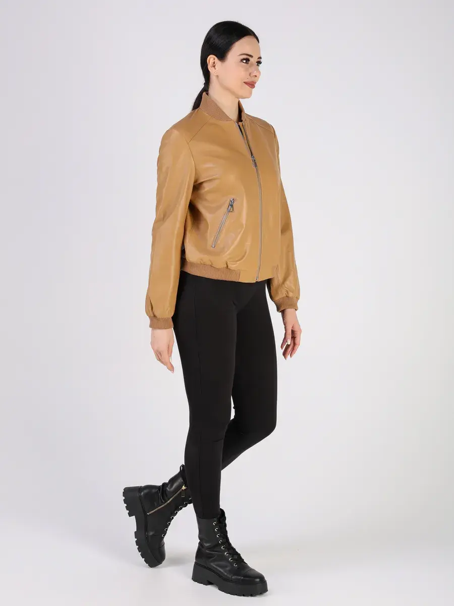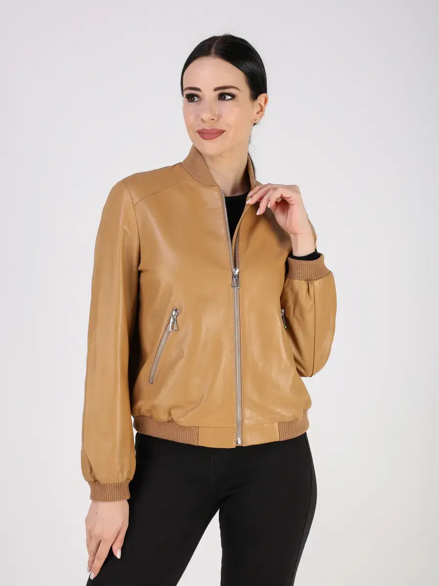 Куртка осенняя женская, бомбер женский изготовлена из высококачественной кожи ягненка, которая отличается высокой прочностью и долговечностью, сохраняя при этом свою мягкость и эластичность, в любое время года, осенью и весной.
