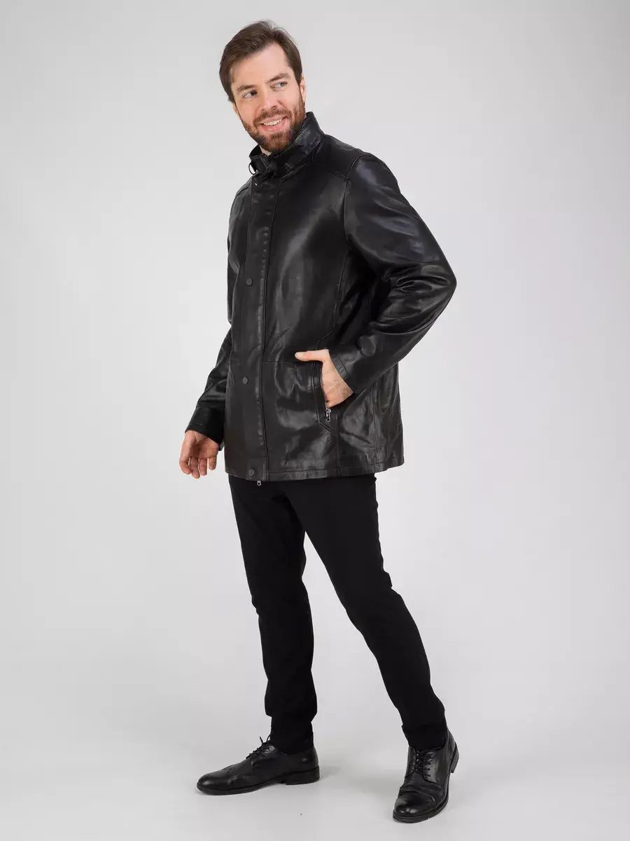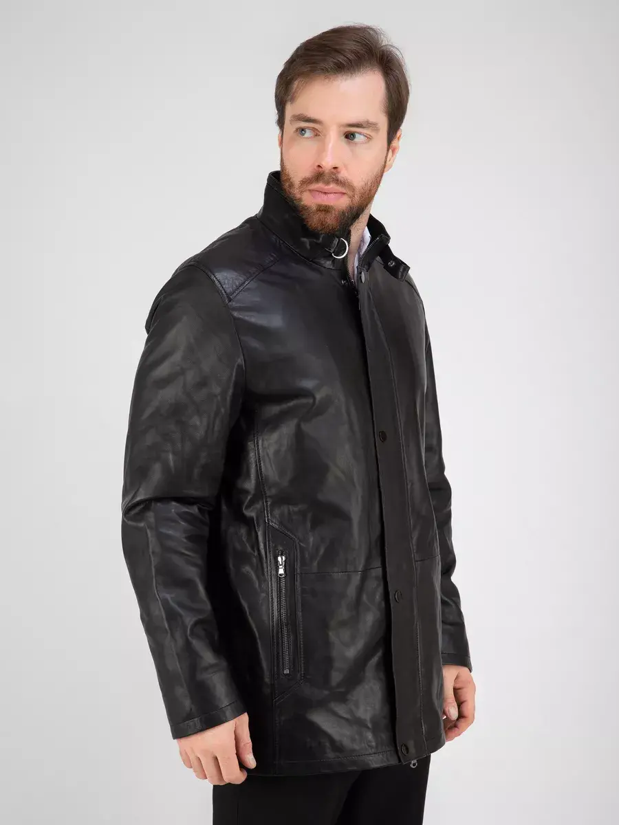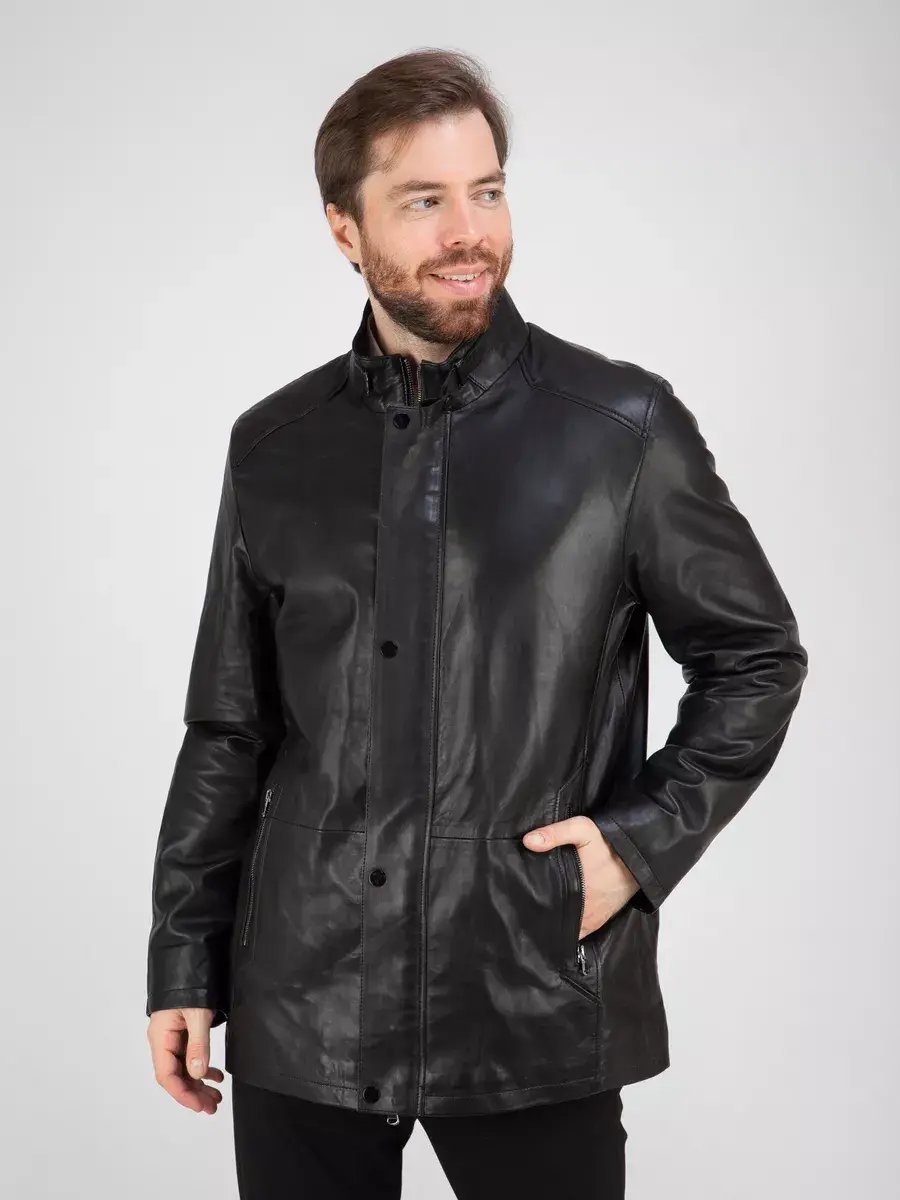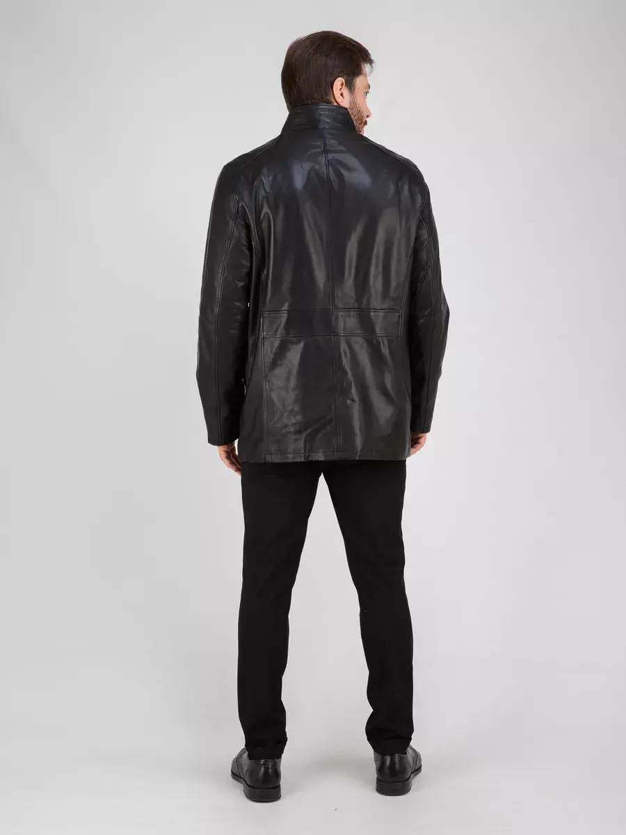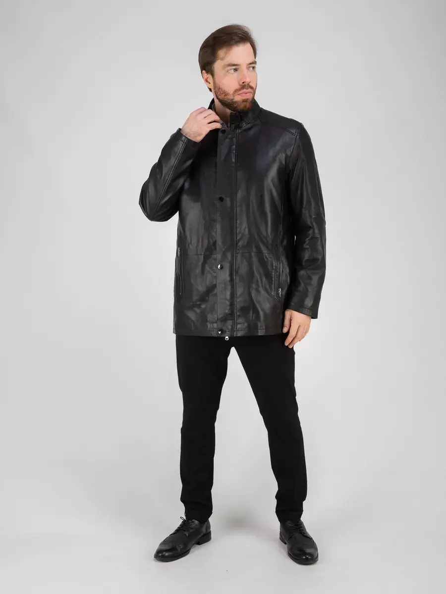 Куртка кожаная мужская имеет длину по спинке 80 см., что обеспечивает идеальное соотношение между длиной и защитой от холода, прекрасно подходить под классический стиль одежды, позволяет одевать ее поверх пиджака и рубашки, идеально впишется в деловой или повседневный стиль и дополнит солидный образ мужчины или парня подростка летом или осенью. Кожа в черном цвете и вставки придают куртке - пальто эксклюзивный и богатый вид. Эта модель лучше, чем любая джинсовая или текстильная куртка благодаря своей эксклюзивности и высокому качеству материала.
