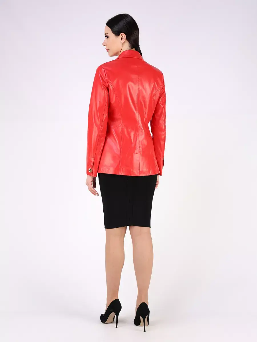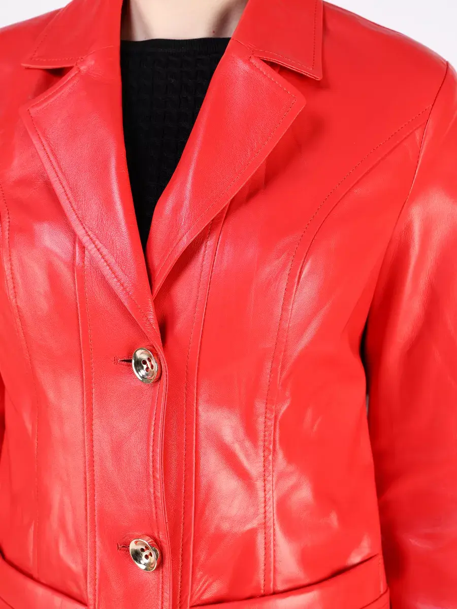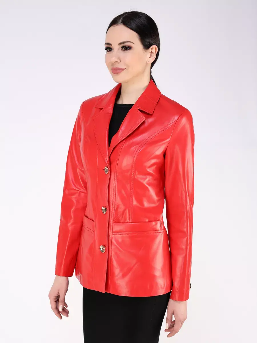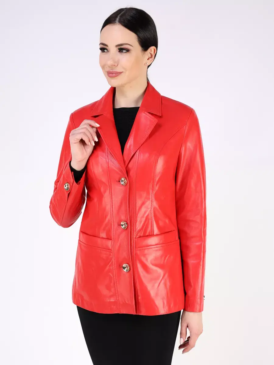 Каждая деталь этой кожаной куртки, пиджака выполнена с особым вниманием к качеству материалов. Втачной рукав с пуговицами на манжете и ровные швы с классическим английским воротником делают эту женскую куртку универсальным элементом гардероба, который подходит практически под любой стиль, деловой или повседневный. Застежка на модных пуговицах, прорезные карманы и приталенный крой - все это приятные детали образа женственности и шарма.