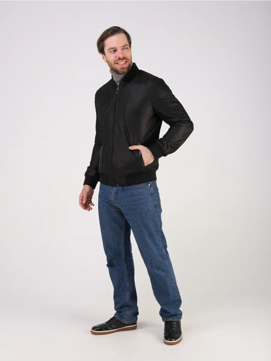 Куртка кожаная мужская из натуральной замши имеет длину по спинке 70 см, утягивающие трикотажные манжеты, что обеспечивает идеальное соотношение между длиной и защитой от холода, прекрасно подходить под классический и повседневный стиль одежды в прохлодное лето. Застежка на молнии и прорезные карманы добавляют функциональности данной куртки.