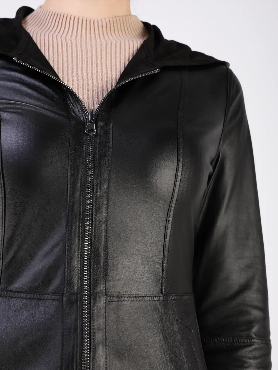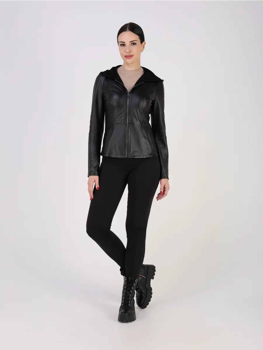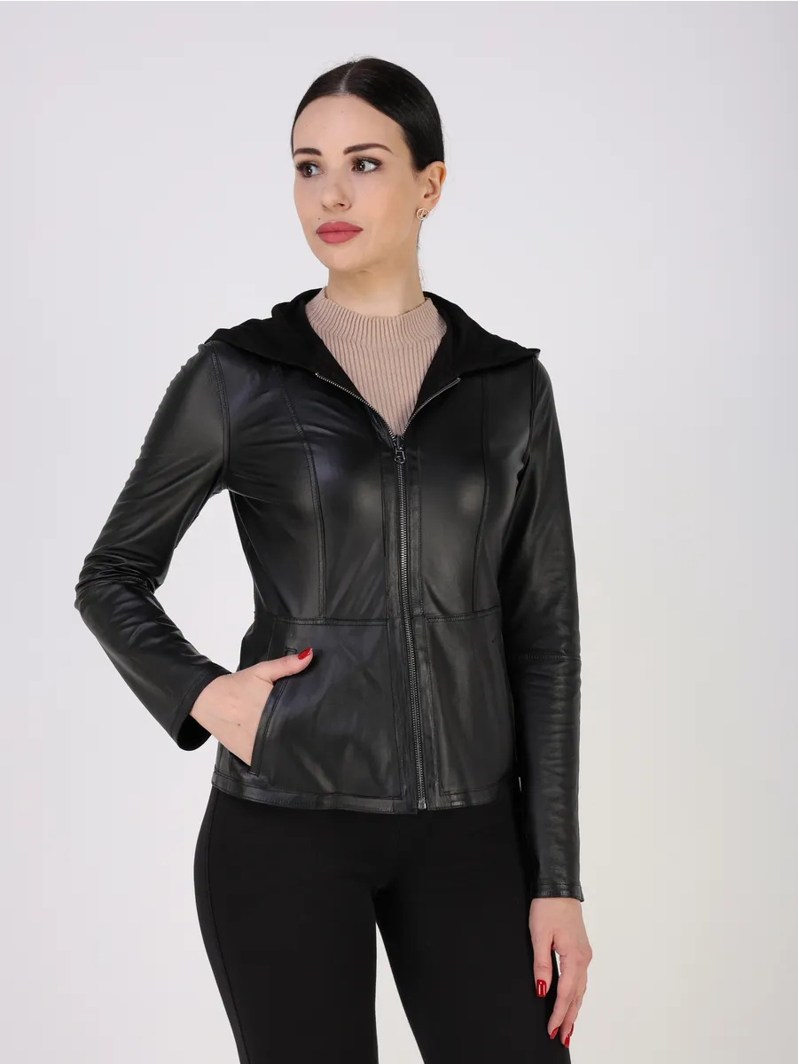 куртка демисезонная женская из натуральной кожи с капюшоном,