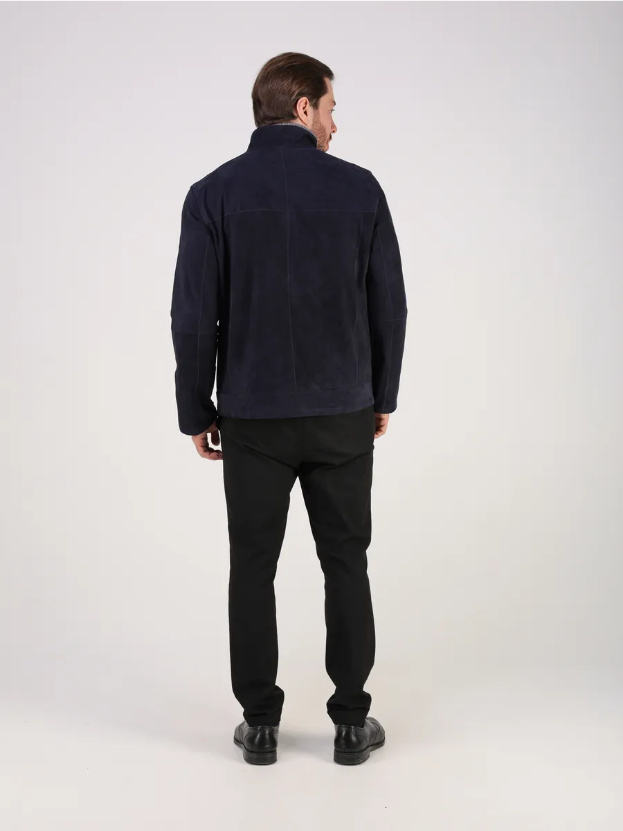 Куртка кожаная мужская из натуральной замши имеет длину по спинке 70 см, что обеспечивает идеальное соотношение между длиной и защитой от холода, прекрасно подходить под классический и повседневный стиль одежды в прохлодное лето. Застежка на молнии и прорезные карманы добавляют функциональности и практичности в использовании данной куртки.