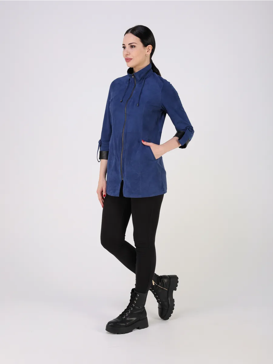 Весенняя куртка женская демисезонная выполнена из натуральной замши испанского ягненка, что делает её особенно мягкой и приятной на ощупь.