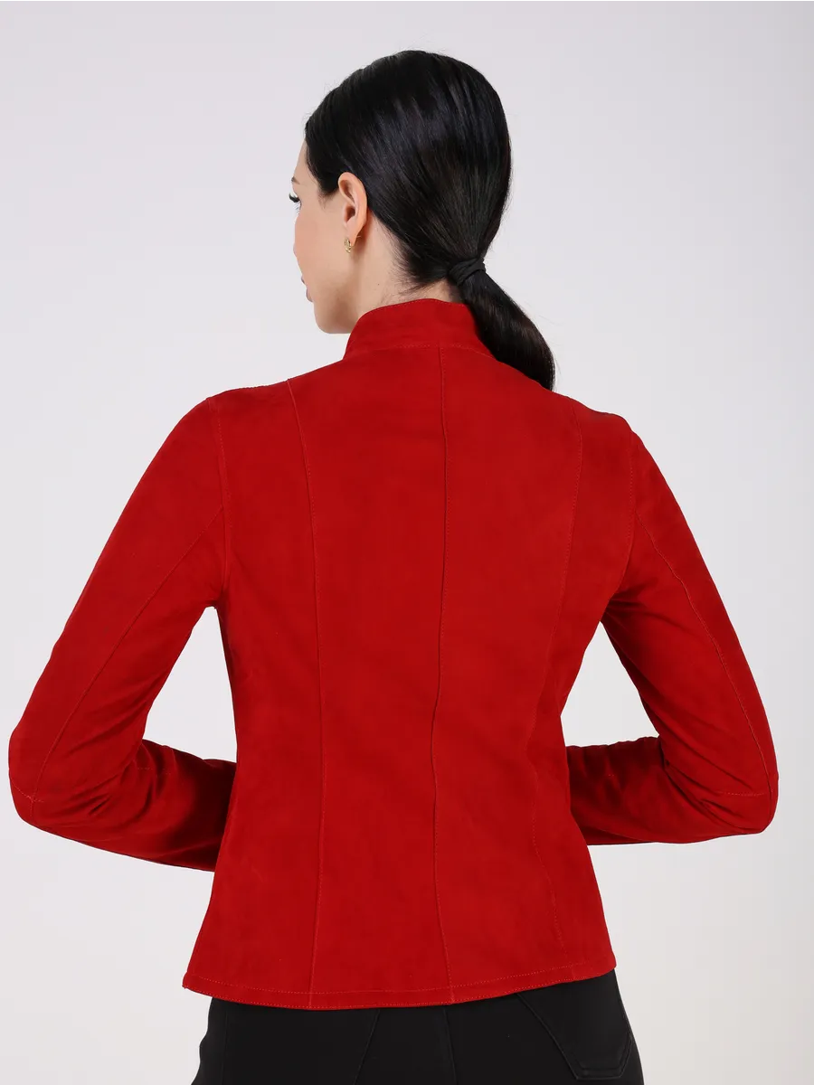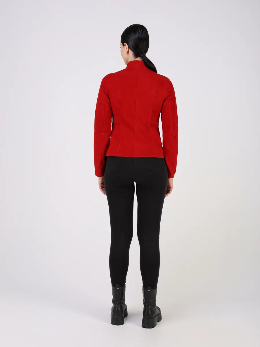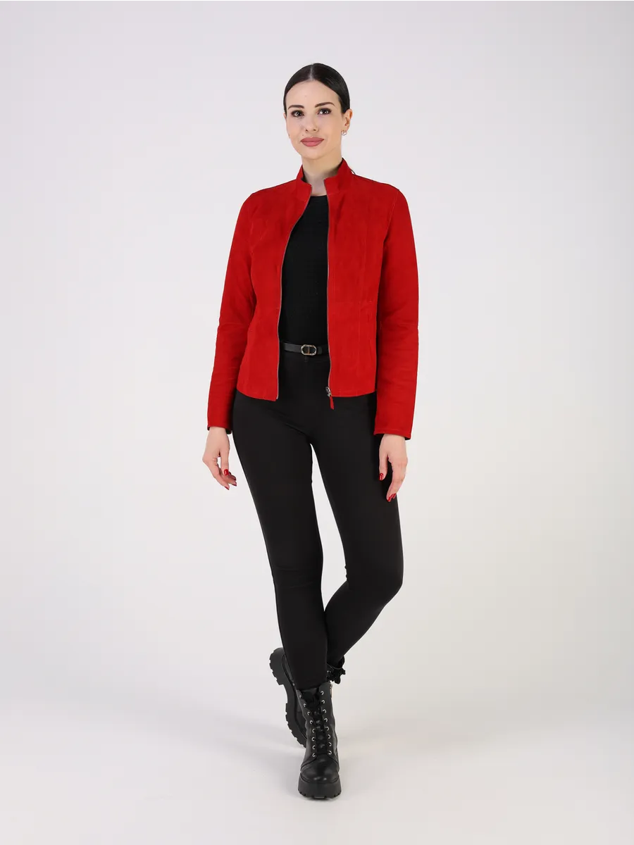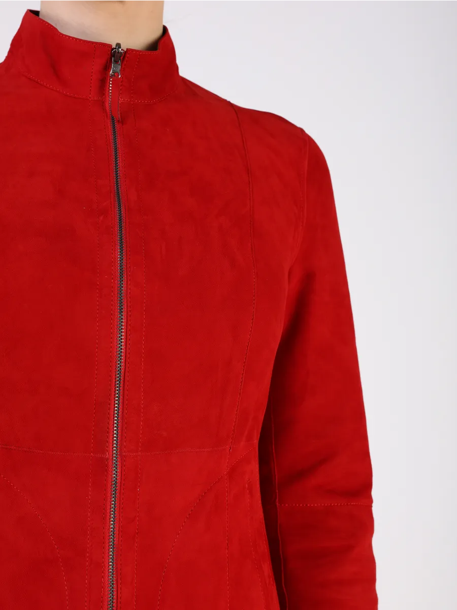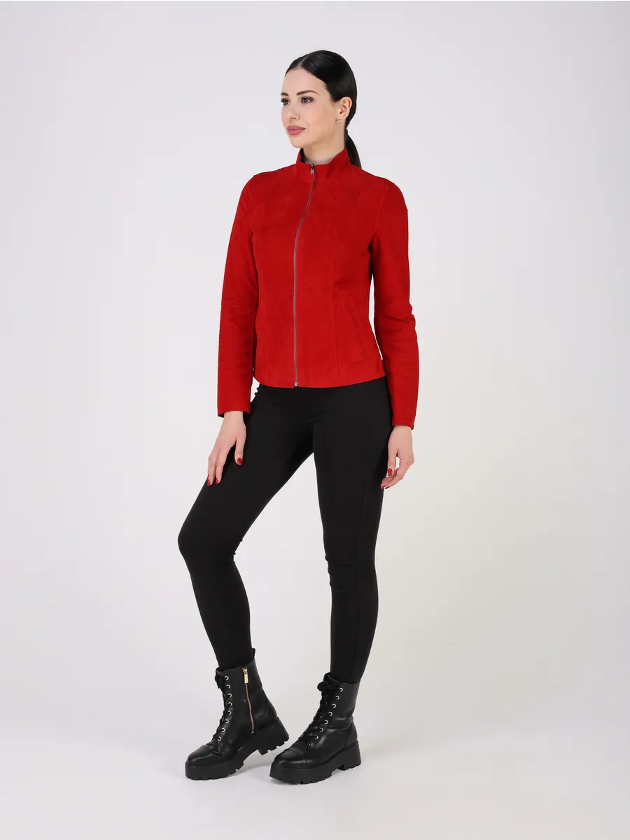 Замшевая куртка женская красная производство Турция гарантирует безупречное качество шитья.
