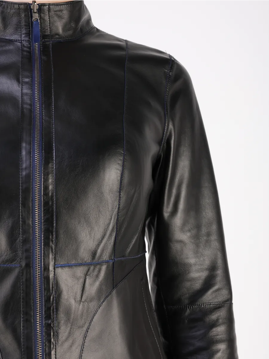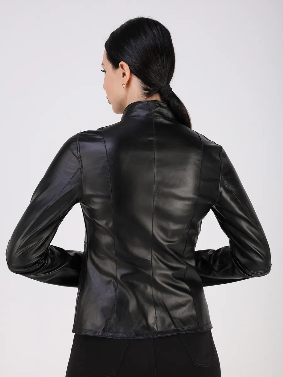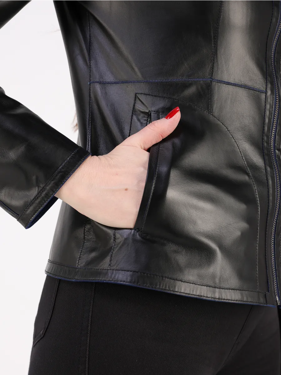 Куртка демисезонная женская кожаная натуральная оснащена застежкой на молнии, удобными прорезными карманами и актуальным рукавом, добавляющим трендовый акцент. Лёгкая куртка кожаная женская весна-осень приталенной посадки подчёркивает достоинства фигуры и подходит как под джинсы, так и под брюки, футболки, поло, рубашки или блузки. Универсальность фасона позволяет носить куртку весной, летом и осенью, а большой размерный ряд идеально садится даже на женщин с пышными формами.