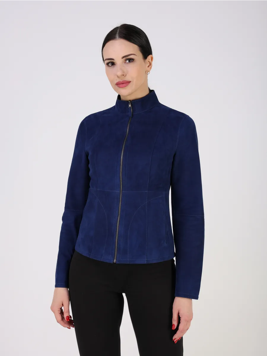 Замшевая куртка женская синяя производство Турция гарантирует безупречное качество шитья.