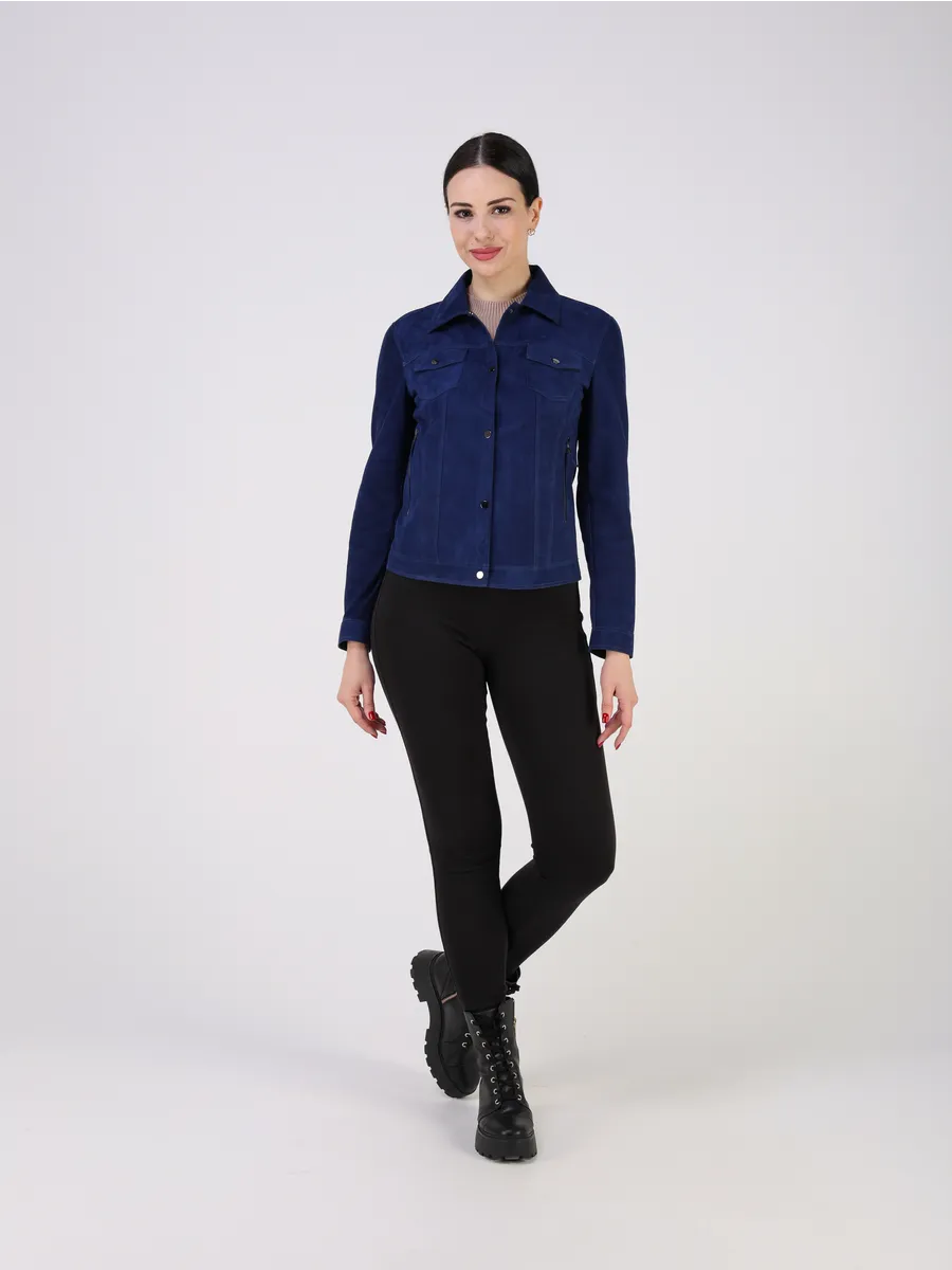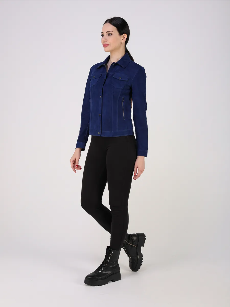 Джинсовая куртка женская весна - кожанка выполнена из натуральной замши испанского ягнёнка, что обеспечивает исключительную мягкость и износостойкость.