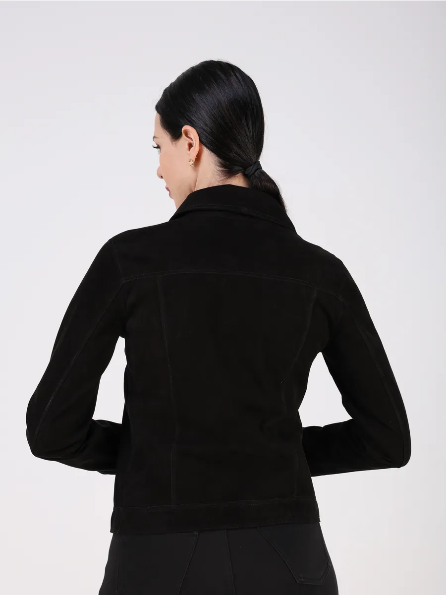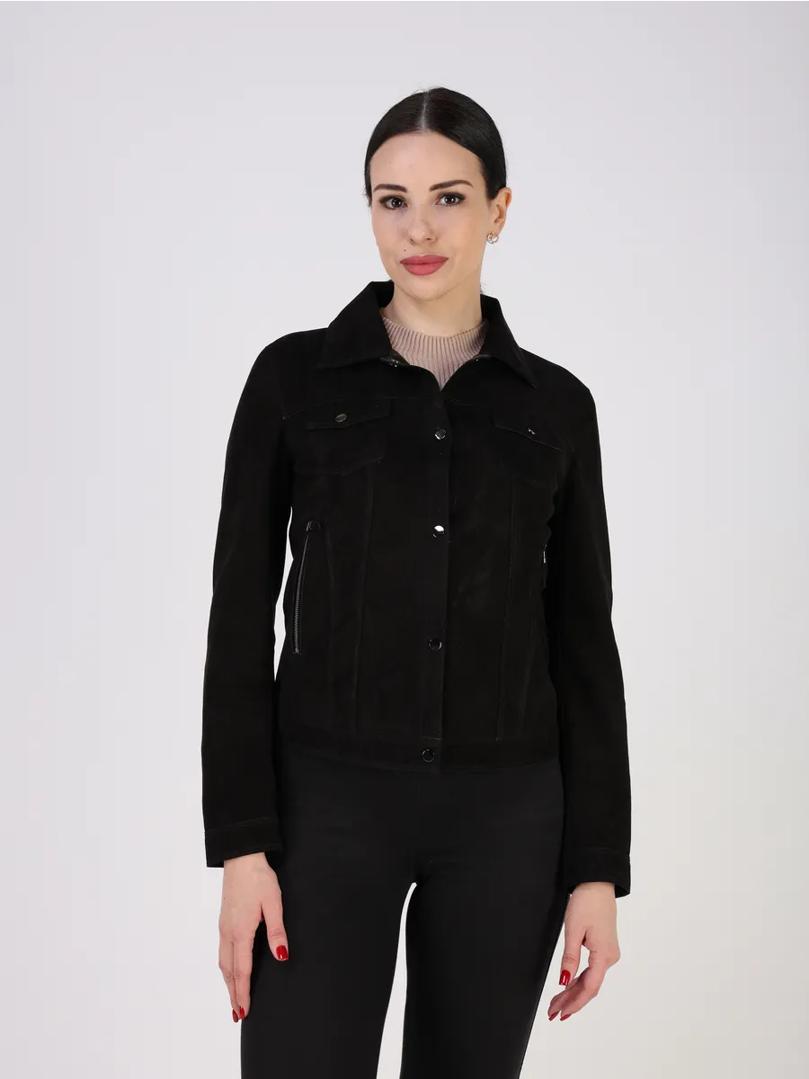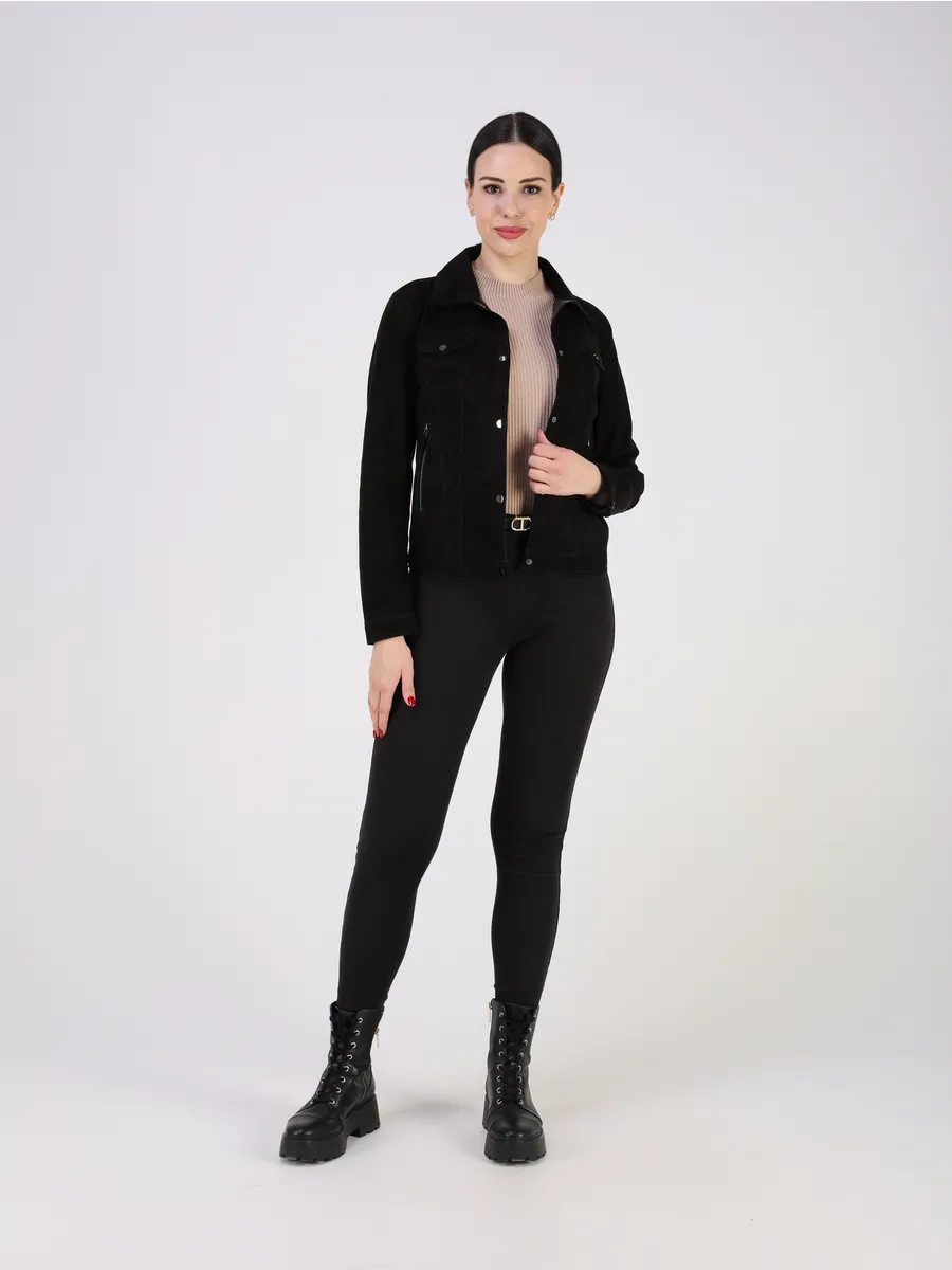 Джинсовая куртка женская весна - кожанка выполнена из натуральной замши испанского ягнёнка, что обеспечивает исключительную мягкость и износостойкость.