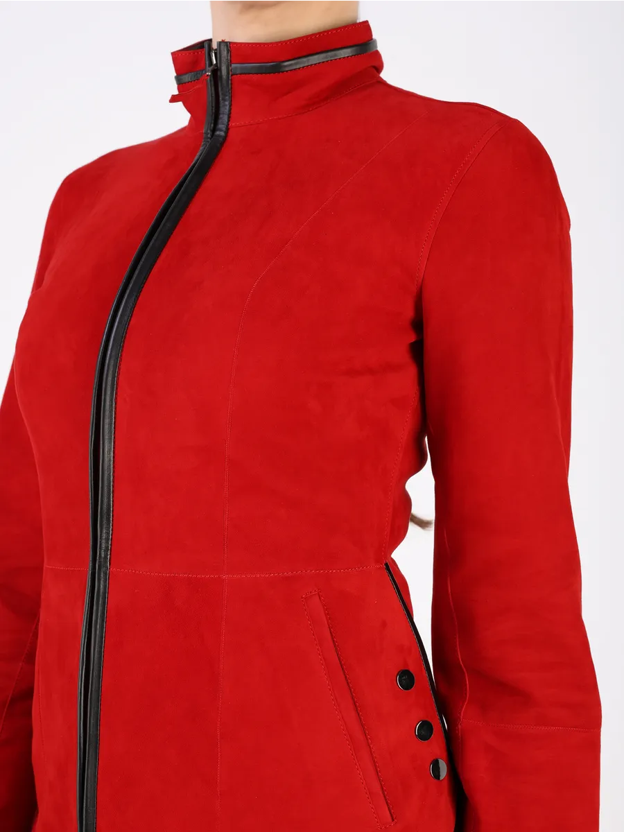 Замшевая куртка женская красная производство Турция гарантирует безупречное качество.