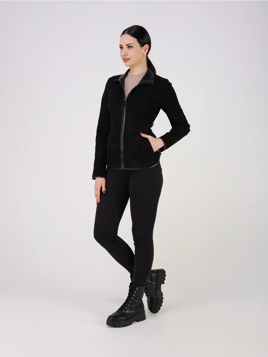 Замшевая куртка женская черная производство Турция гарантирует безупречное качество.
