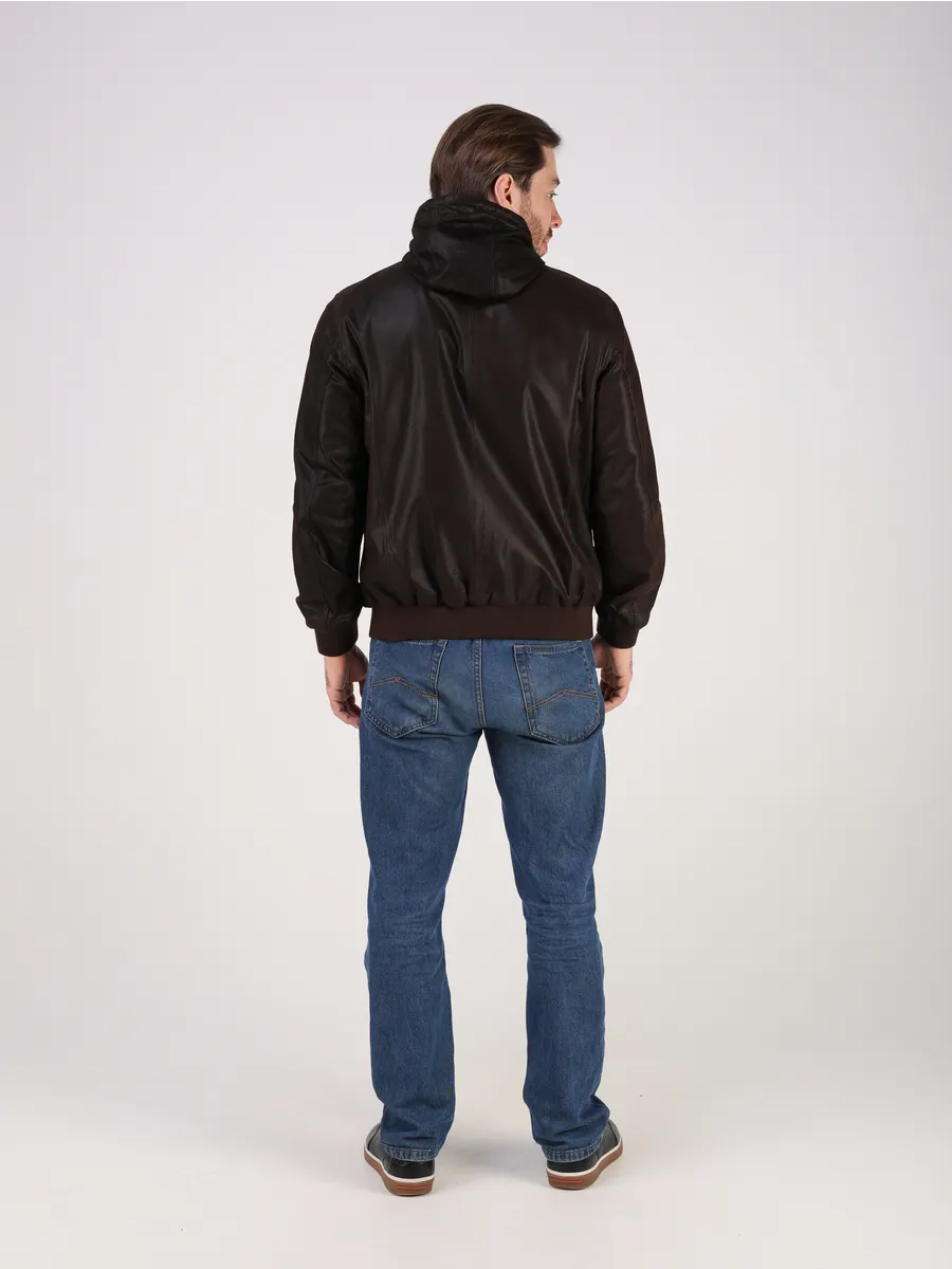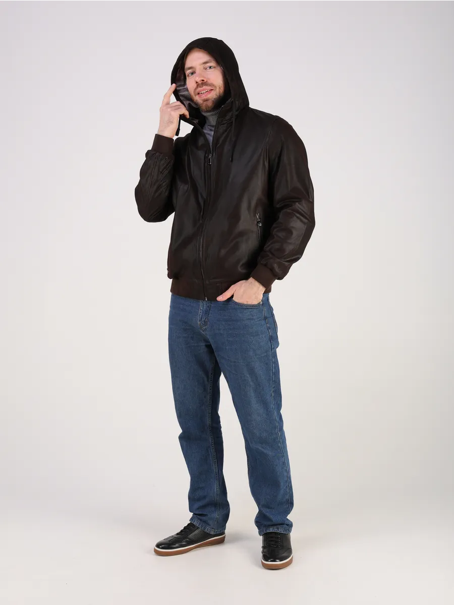 Куртка кожаная мужская демисезонная из натуральной замши имеет длину по спинке 70 см, утягивающие трикотажные манжеты, и несъемный капюшон на кулисках что обеспечивает идеальную защиту от холода, прекрасно подходить под классический и повседневный стиль одежды в прохлодное лето. Застежка на молнии и прорезные карманы на молнии добавляют функциональности и практичности.