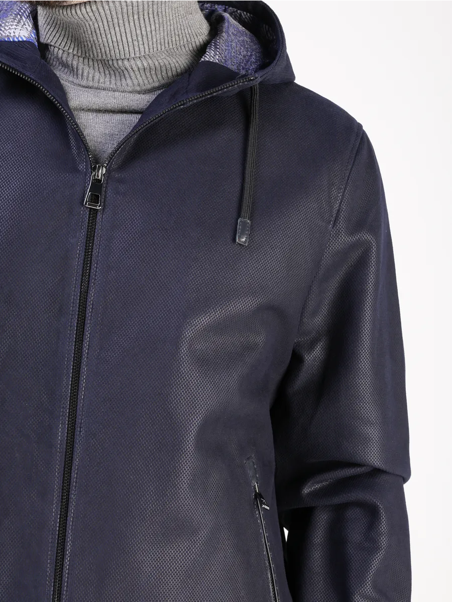 Куртка кожаная мужская демисезонная из натуральной замши имеет длину по спинке 70 см, утягивающие трикотажные манжеты, и несъемный капюшон на кулисках что обеспечивает идеальную защиту от холода, прекрасно подходить под классический и повседневный стиль одежды в прохлодное лето. Застежка на молнии и прорезные карманы на молнии добавляют функциональности и практичности.
