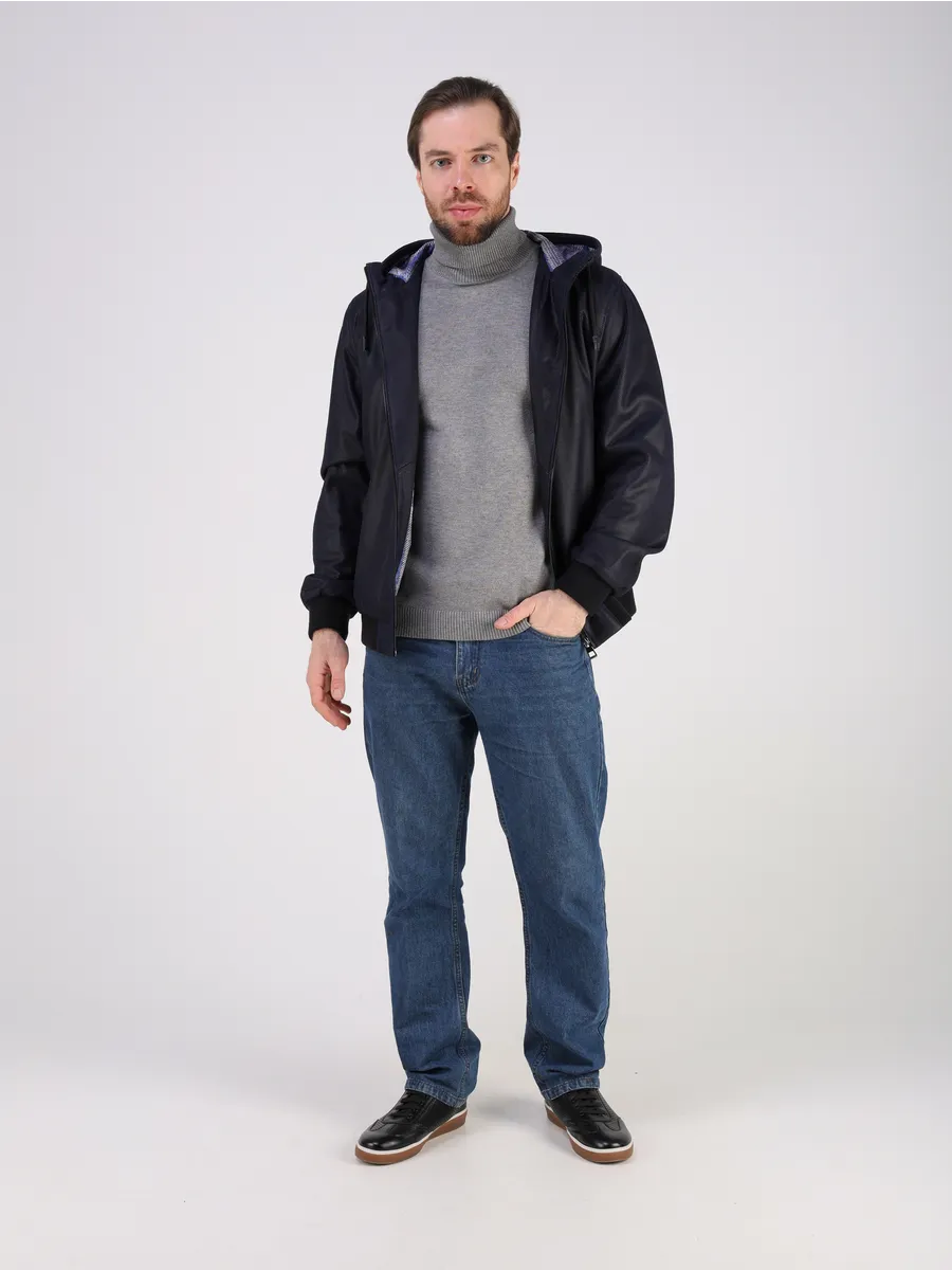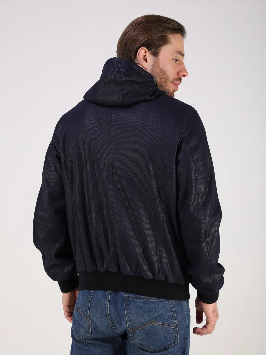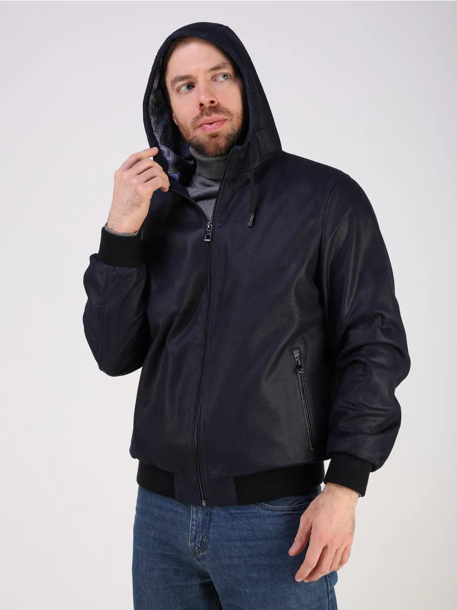 куртка мужская кожаная короткая с капюшоном