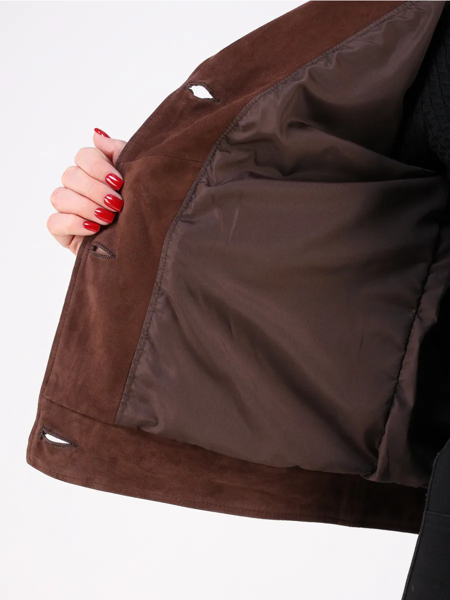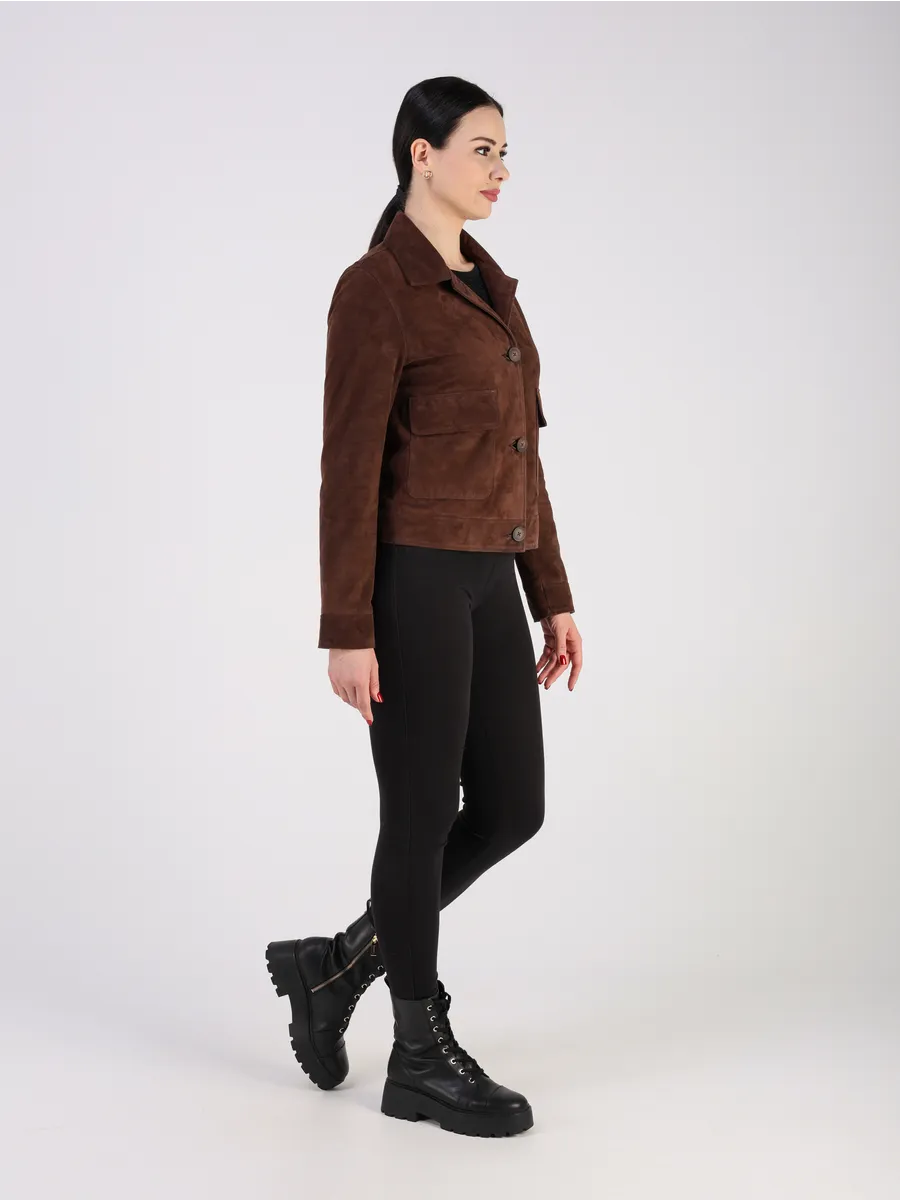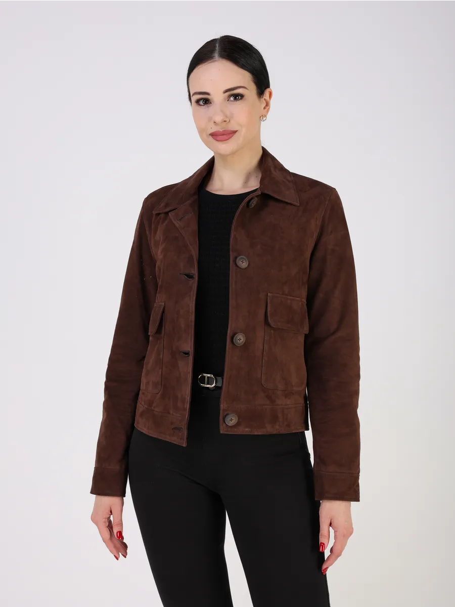 Кожаный пиджак женский приталенный из натуральной замши,