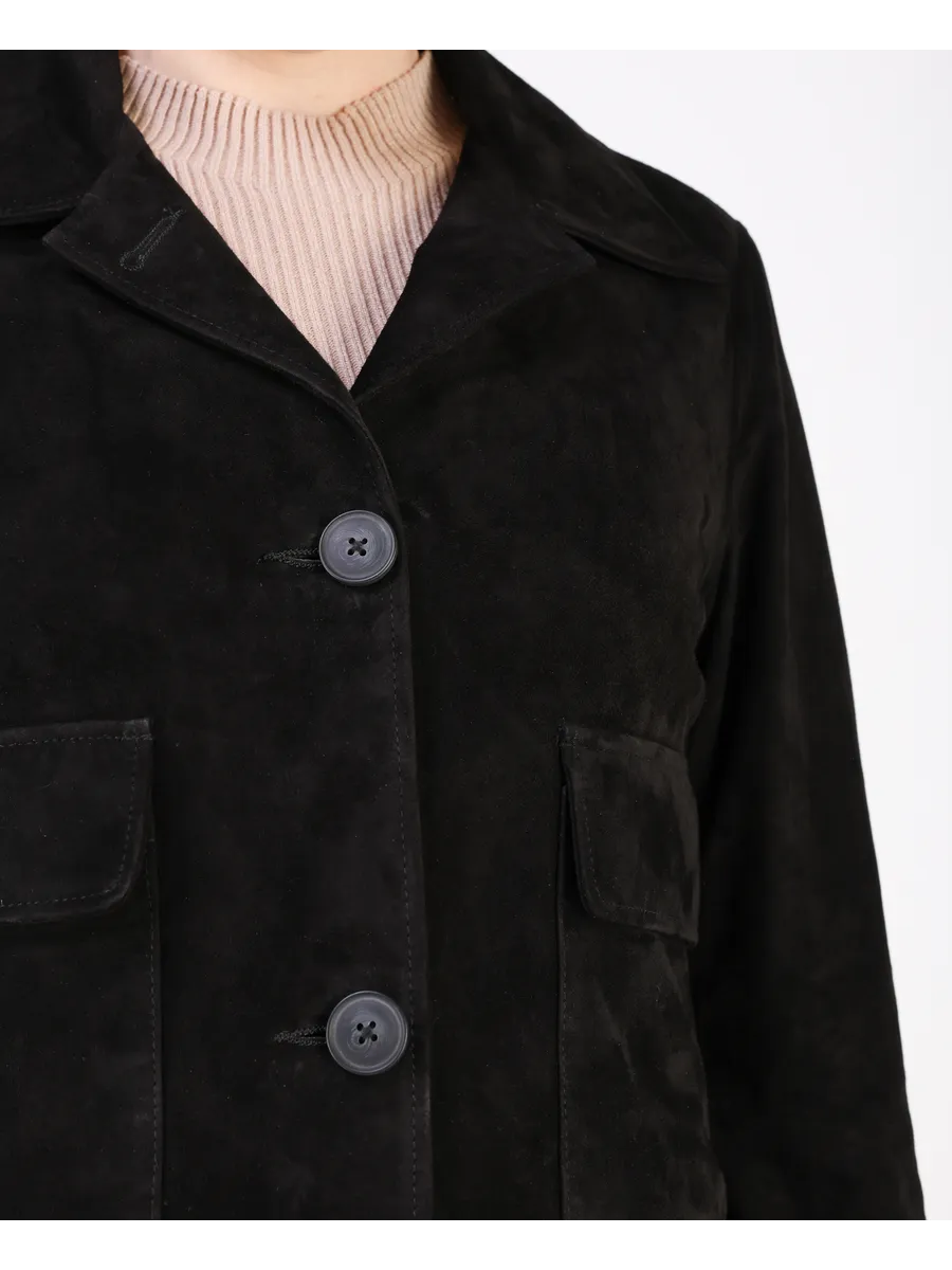 Кожаный пиджак женский приталенный из натуральной замши,
