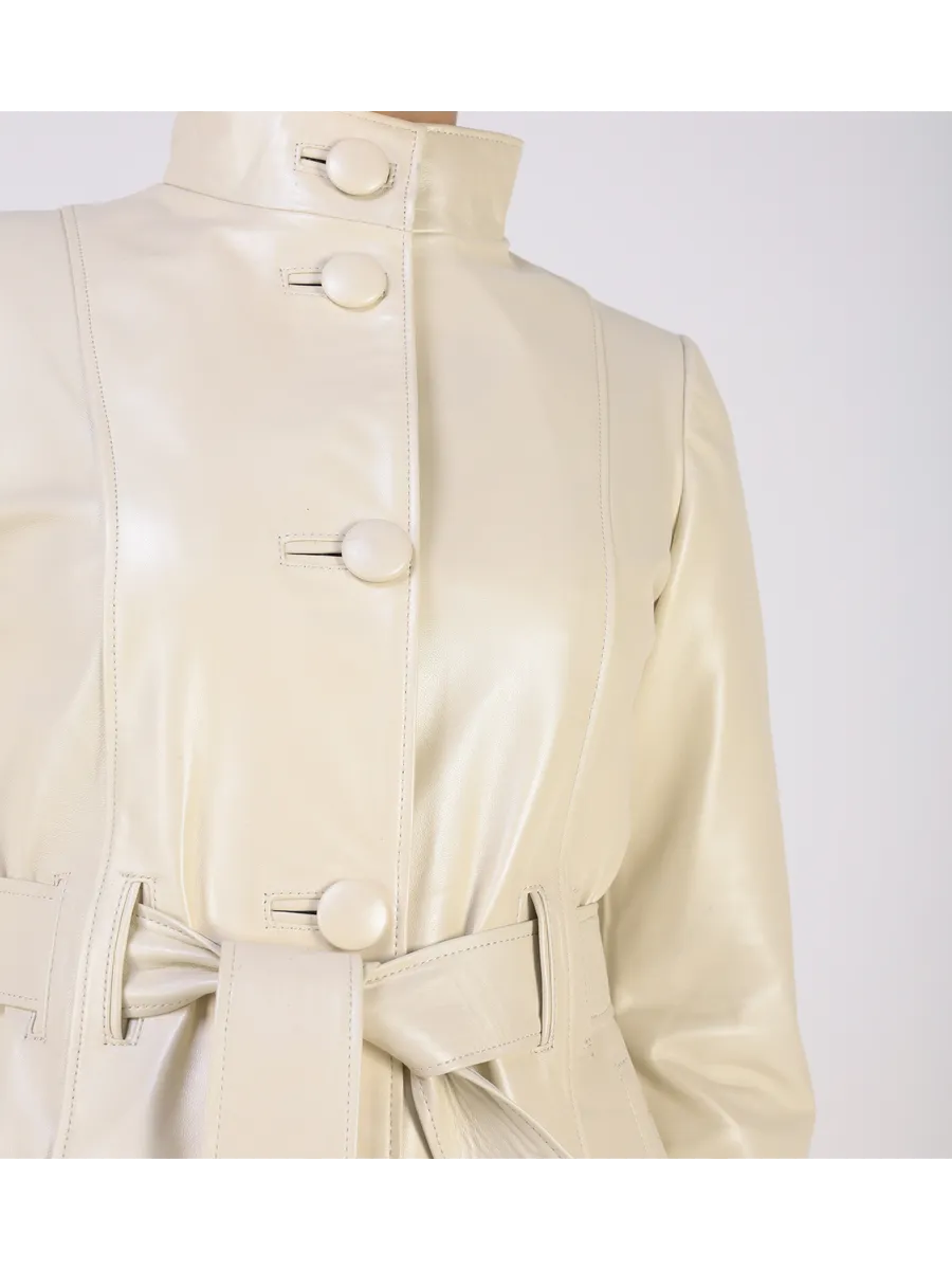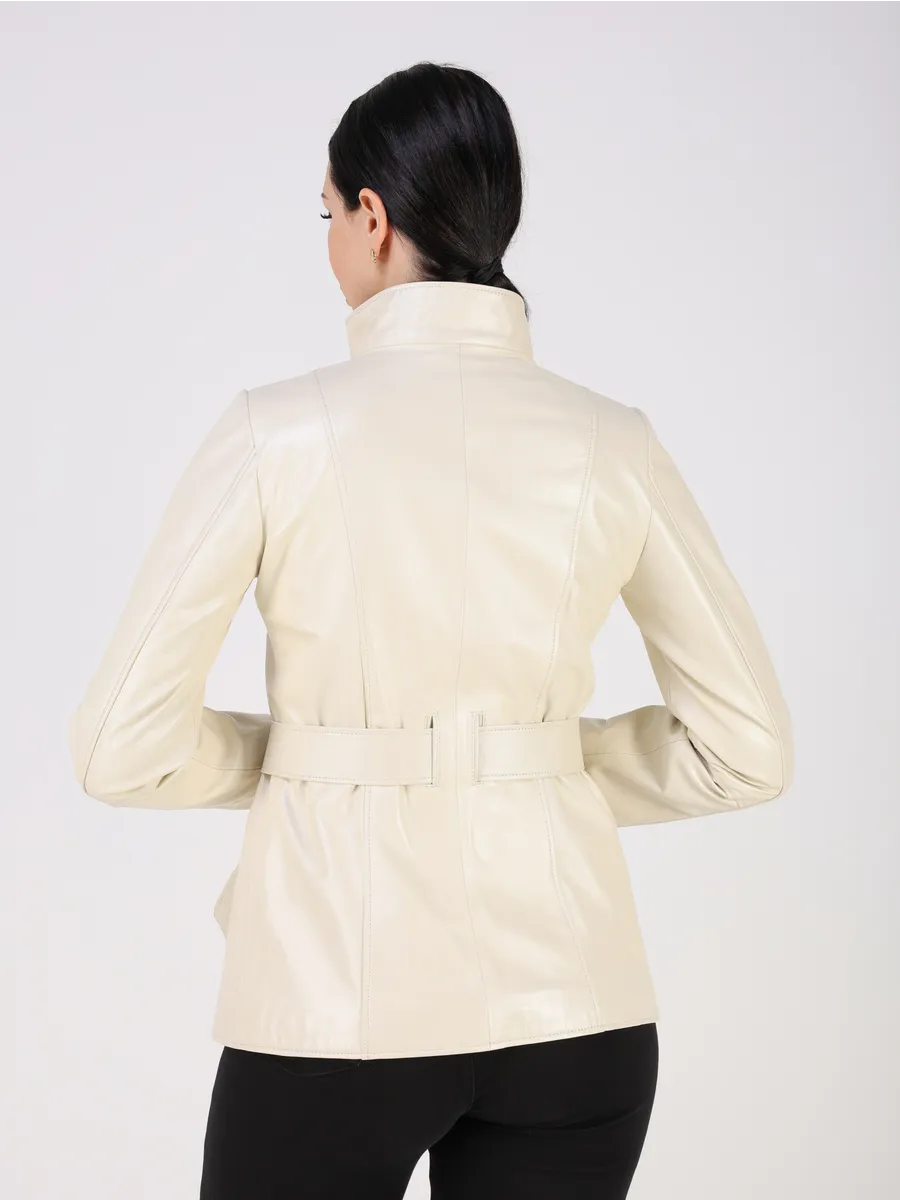 Эстетичная короткая куртка женская осенняя - весенняя куртка женская сшита из плотной и мягкой, непромокаемой натуральной кожи ягненка "плонже" с гладкой фактурой. Изнутри куртка демисезонная женская отделана приятной к телу подкладкой. Стильная кожанка дополнена воротником - стойкой и длинным поясом, который делает изделие приталенным.