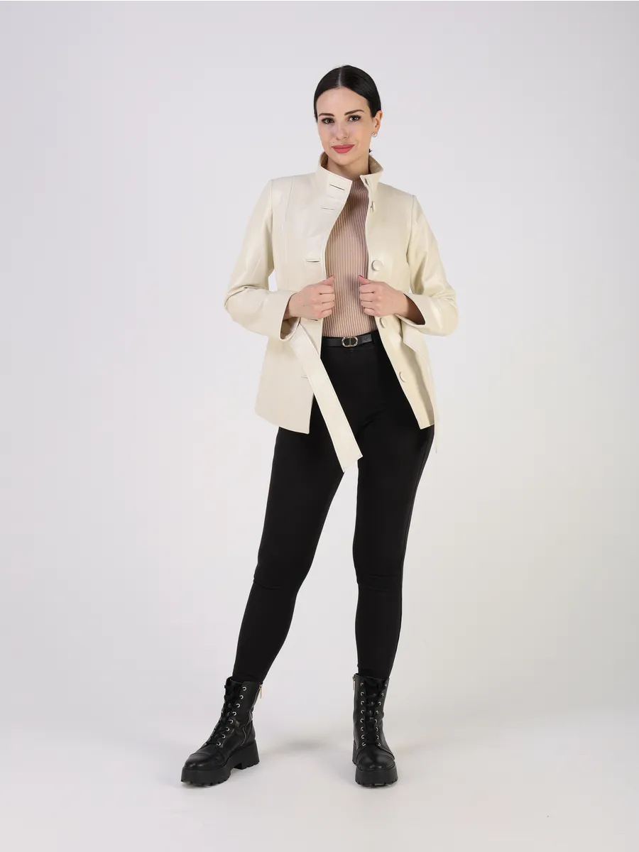 Крутая межсезонная модель куртки с длинными рукавами застегивается на пуговицы и имеет два прорезных кармана. Это стильная модная кожаная куртка женская весна-осень классика турецкого производства, которая станет хорошим выбором для лето и весны.