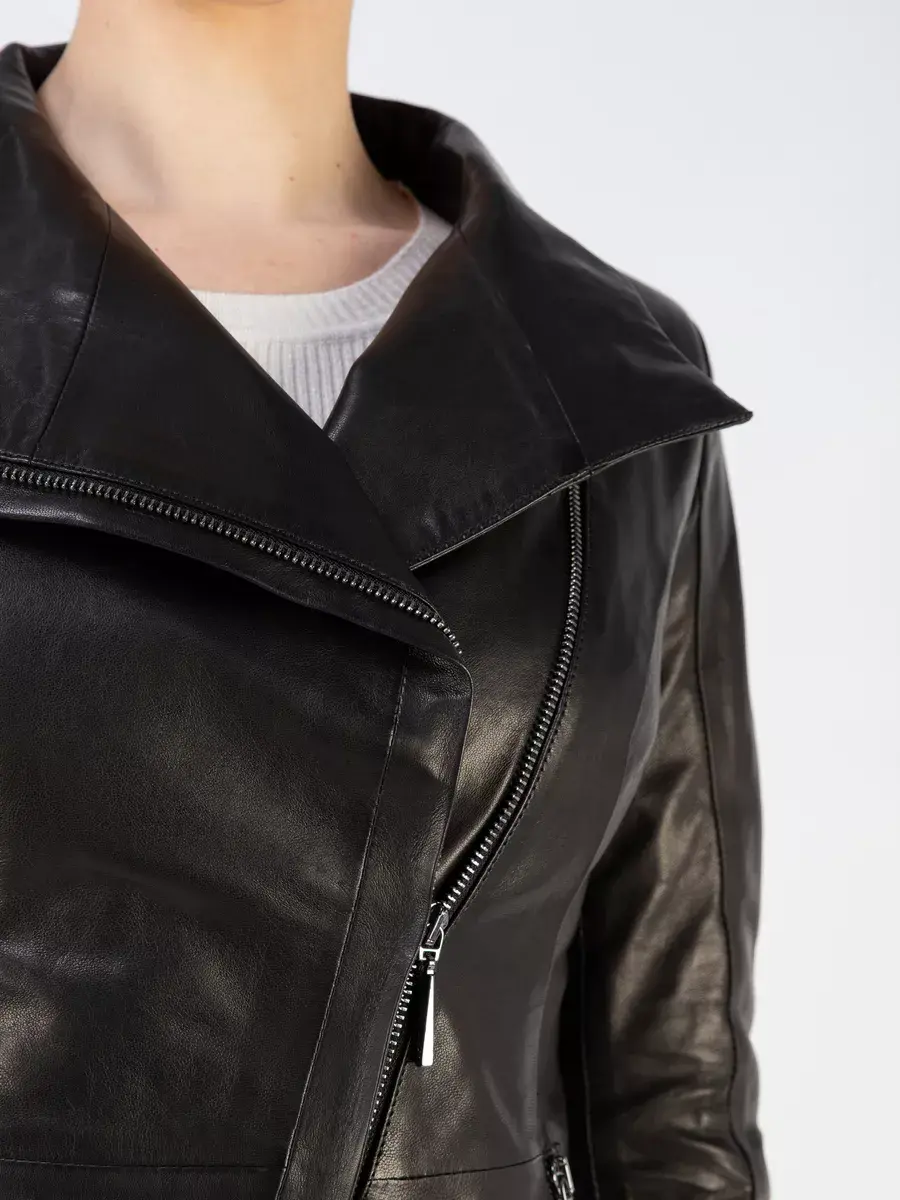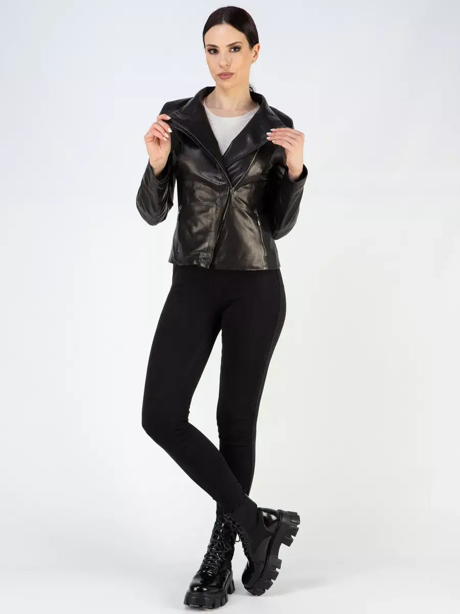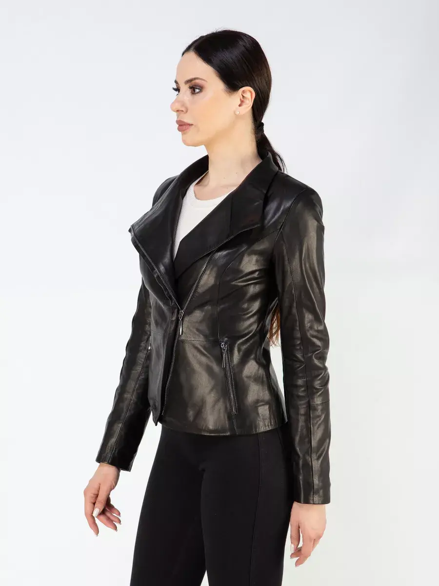 Черная кожаная куртка женская, косуха женская кожаная из натуральной кожи - это стильная и модная верхняя одежда, идеально подойдет для носки весной и осенью. Кожаная куртка косуха изготовлена из высококачественной натуральной кожи ягненка выделки вежеталь - кожа молодых овец, которая применяется для создания эксклюзивных модных коллекций верхней одежды. Кожа гладкая и очень прочная, легкая и надежная.