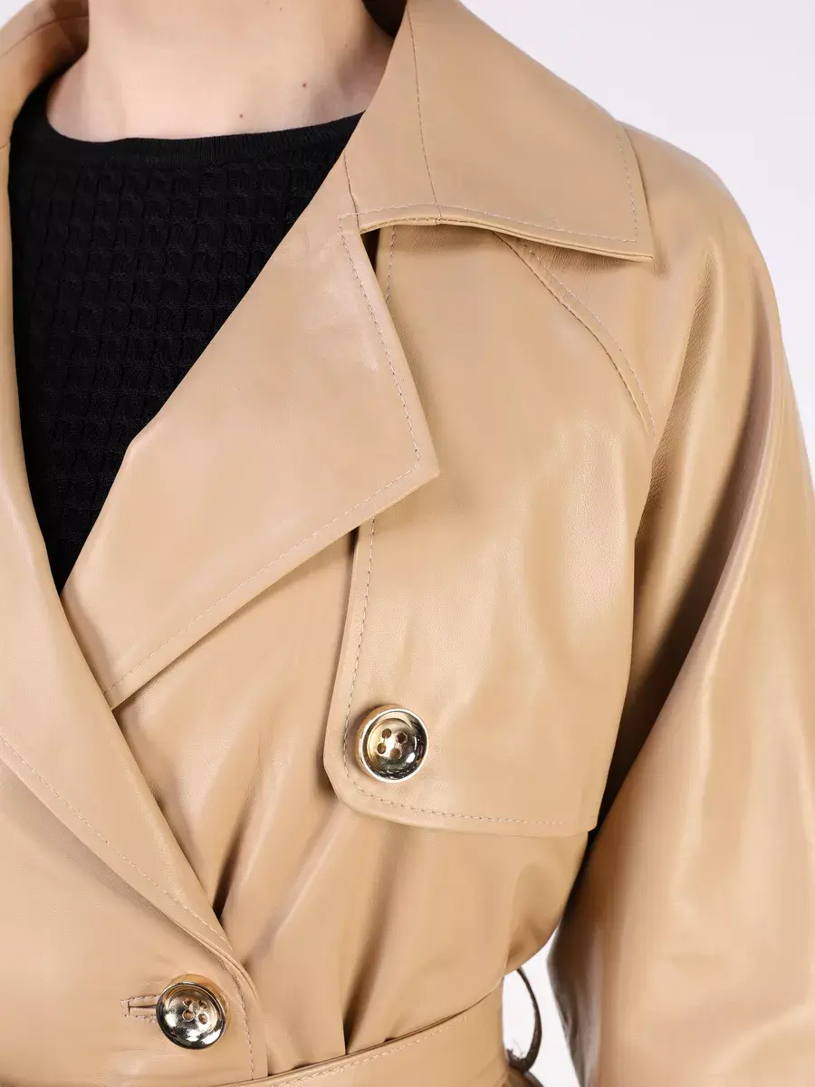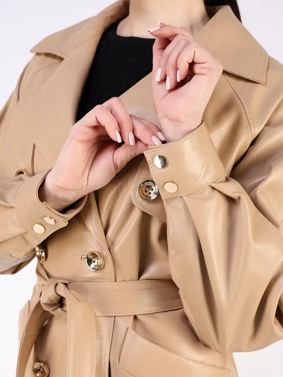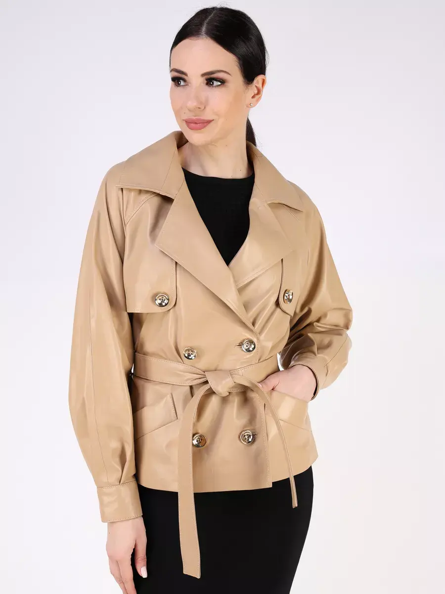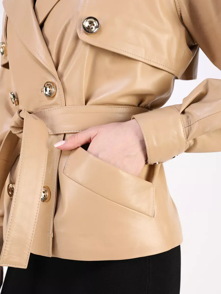 Эксклюзивная кожаная куртка женская осень - весна, тренч женский короткий из натуральной кожи ягненка - идеальный выбор для стильных женщин, стремящихся выглядеть безупречно в любое время осеннего и весеннего сезона. Женская куртка демисезонная изготовлена из высококачественной натуральной кожи выделки плонже, которая применяется для создания эксклюзивных модных коллекций верхней одежды. Кожа гладкая и очень прочная, легкая и надежная.