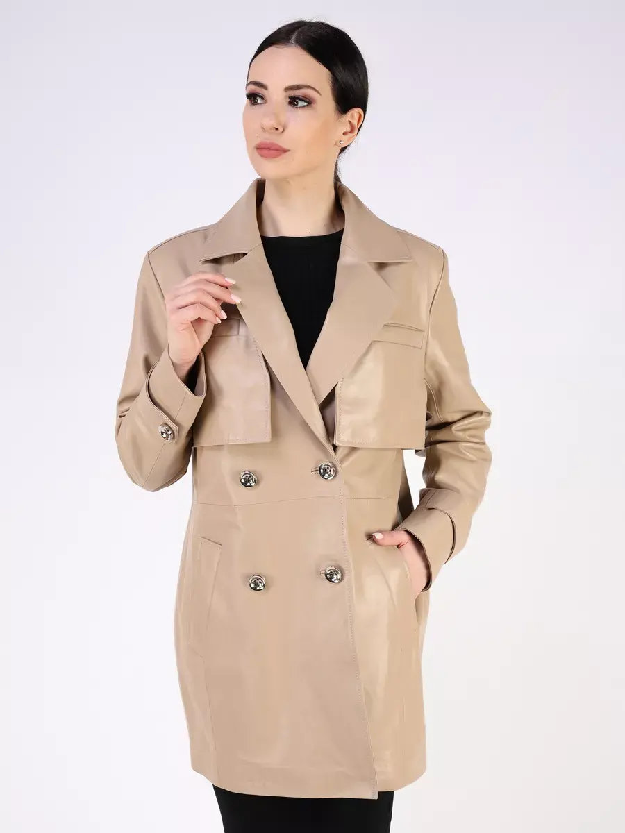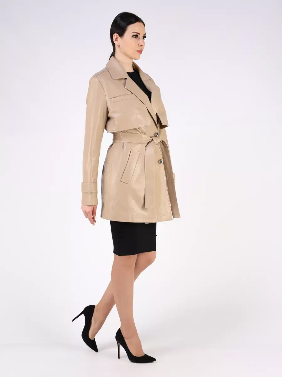 Элегантная кожаная куртка женская осень - весна, тренч женский короткий из натуральной кожи ягненка - идеальный выбор для стильных женщин, стремящихся выглядеть безупречно в любое время осеннего и весеннего сезона. Женская куртка демисезонная изготовлена из высококачественной натуральной кожи выделки плонже, которая применяется для создания эксклюзивных модных коллекций верхней одежды. Кожа гладкая и очень прочная, легкая и надежная.