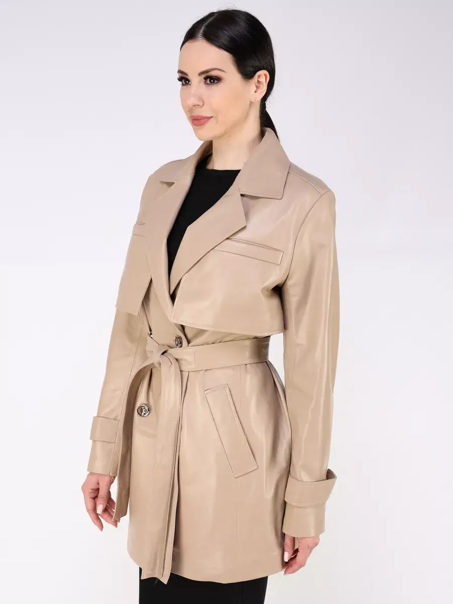 кожаный тренч женский короткий,