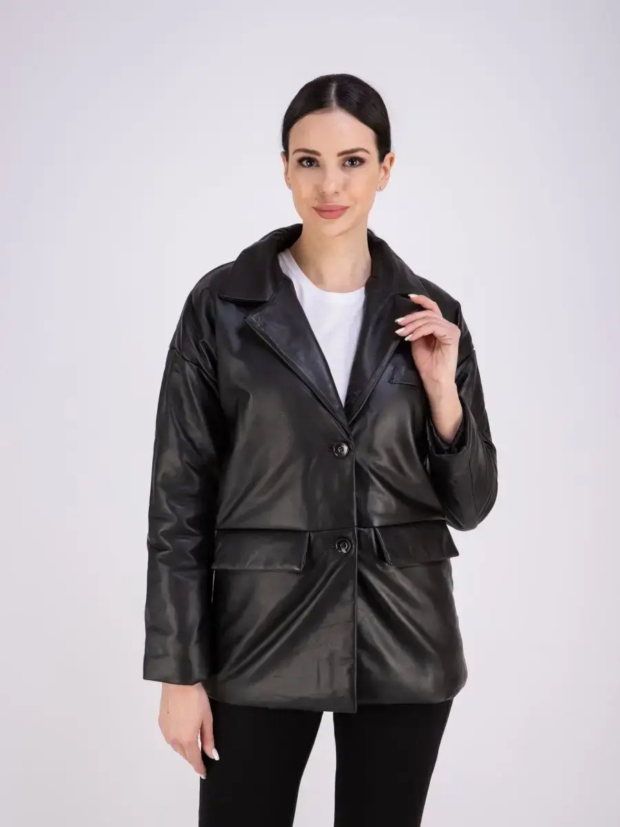 Модная куртка женская кожаная из натуральной кожи прямого кроя, куртка женская весна - осень прекрасно подходить для холодных дней весной, осенью и летом, согреет теплой зимой. Куртка женская из натуральной кожи, утепленная, пиджак женский. В качестве застежки пуговицы, карманы прорезные с клапаном, утеплитель синтепон.