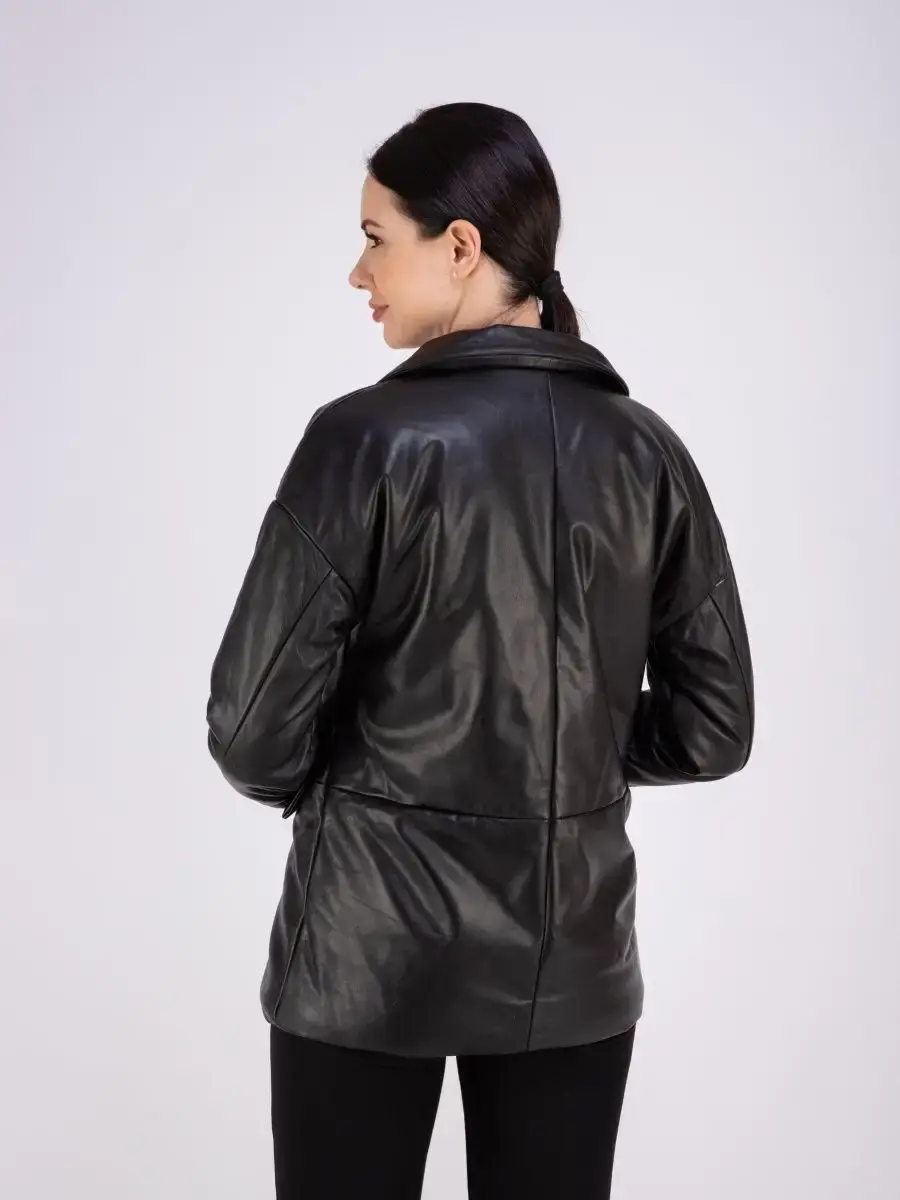 Эксклюзивная женская куртка весна осень из натуральной кожи демисезонная с спущенной линией плеча выполнена из прочной и в то же время из мягкой и гладкой натуральной кожи ягненка. Утепленная куртка - женский пиджак, блейзер отлично защитит от ветра и дождя, хороший вариант на каждый день и сезон, сочетается с различными вещами, прекрасно впишется практически в любой стиль - повседневный, городской, офисный и вечерний. Длина по спинке 70см.