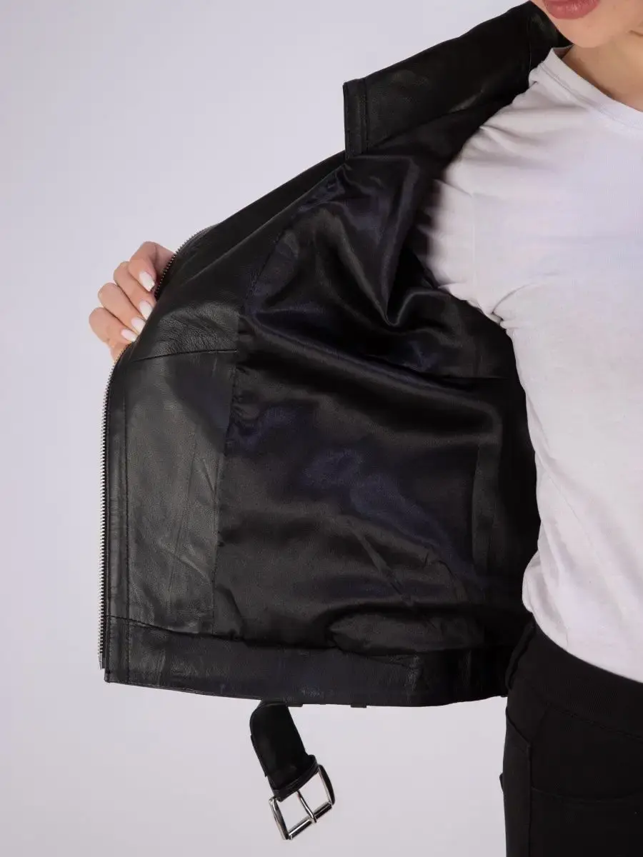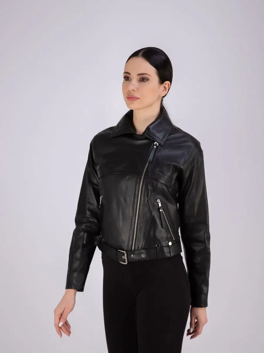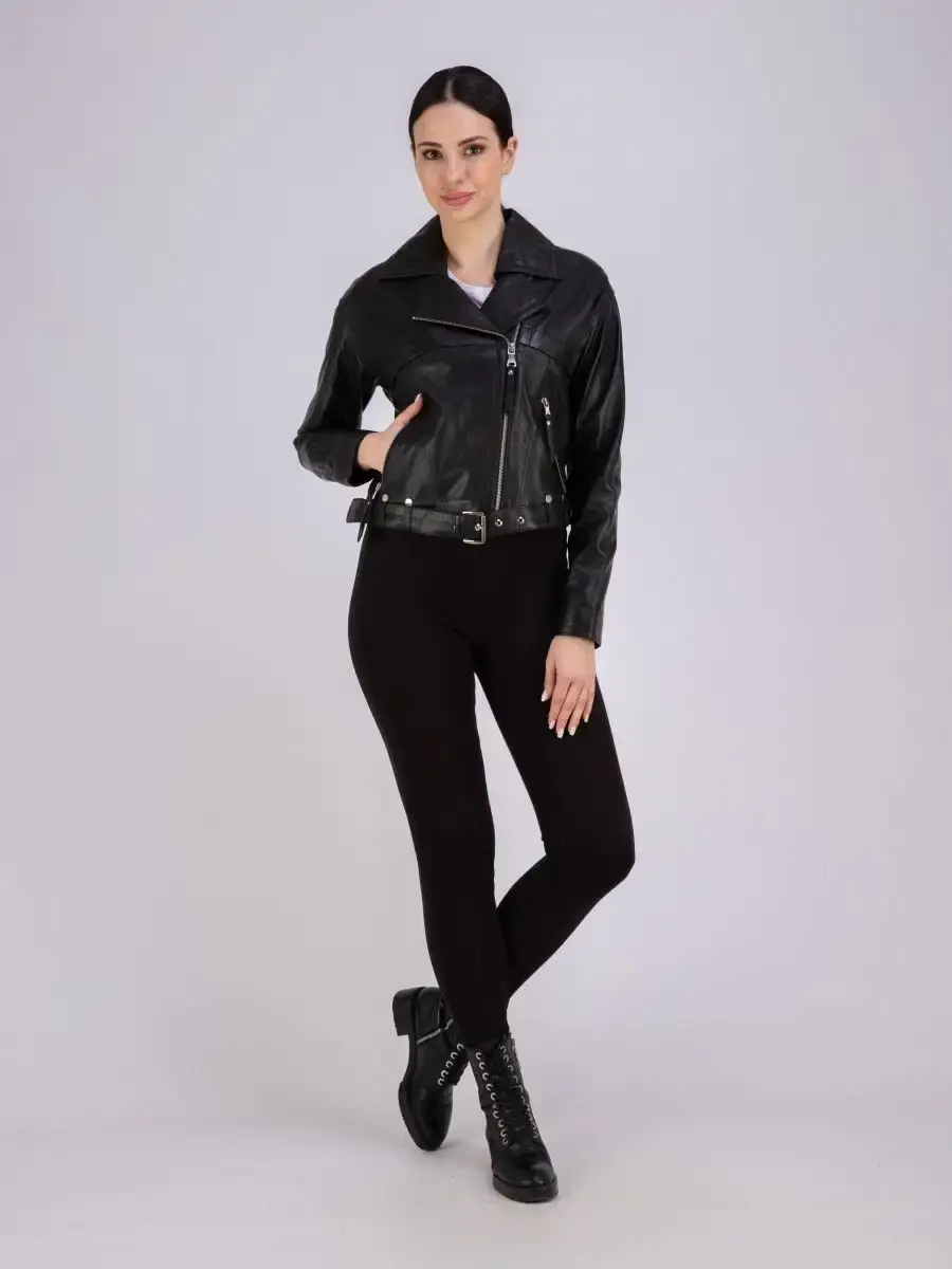Ищете красивую и качественную верхнюю одежду, в которой вам будет комфортно? Тогда обратите внимание на женскую модель верхней одежды из коллекции бренда MONDIAL! Легкая демисезонная курточка сшита из плотной и мягкой, непромокаемой и износостойкой натуральной кожи ягненка с гладкой фактурой. Изнутри она отделана мягкой и приятной к телу подкладкой из полиэстера. Эстетичная короткая модель с классическим воротником, застегивается на молнию и имеет два боковых прорезных кармана на молнии. Эта верхняя одежда станет базовой в гардеробе стильных леди! Она подойдет женщинам, девушкам и девочкам - подросткам. Кожаная куртка женская весна - осень дополнит базовые повседневные или спортивные и молодежные образы в стиле casual (кэжуал). Короткая элегантная кожанка с длинными рукавами и прямым кроем с кожаным ремнем в комплекте красиво сидит по фигуре. Куртка косуха женская идеально подойдет для теплой весны и осени или прохладного лета. Косуха женская куртка из натуральной кожи турецкого производства отлично сочетается с обувью и аксессуарами в классическом и спортивном стиле. Она дополнит модные наряды для походов на работу в офис или на учебу, на прогулки и встречи с друзьями. Однотонная куртка кожаная женская без рисунка и декора представлена в практичном черном цвете. В коллекции бренда вы также найдете разные модели курток. Брендовые модели станут классным выбором для девушек высокого, среднего и невысокого роста. Длина по спинке 60см. Размерная сетка позволяет подобрать подходящую вещь для милых модниц с разными особенностями фигуры. Большие плюс - сайз размеры будут отлично смотреться на полных женщинах. Удобная и красивая эксклюзивная курточка станет отличным выбором для офисных будней и выходных. Это модная классика, которая защитит от весенней и осенней непогоды и не даст замерзнуть прохладным летним вечером. У нас есть акции и распродажи, вы можете купить наши товары в подарок со скидкой!