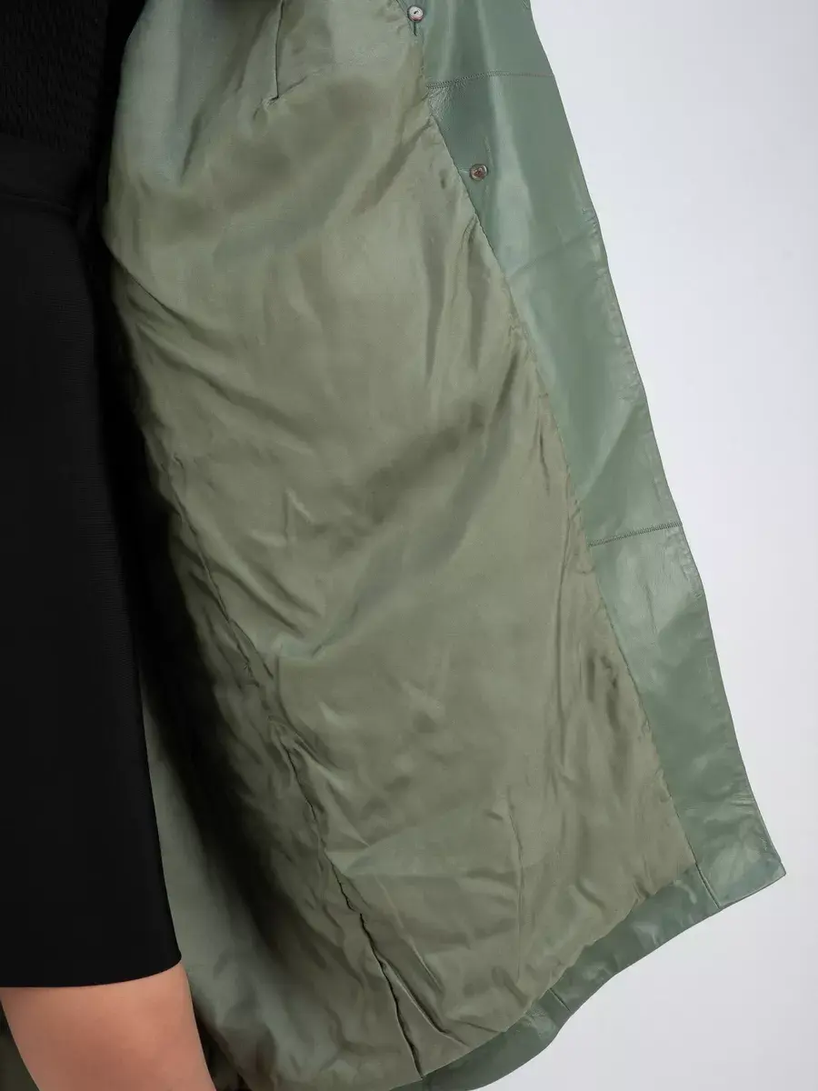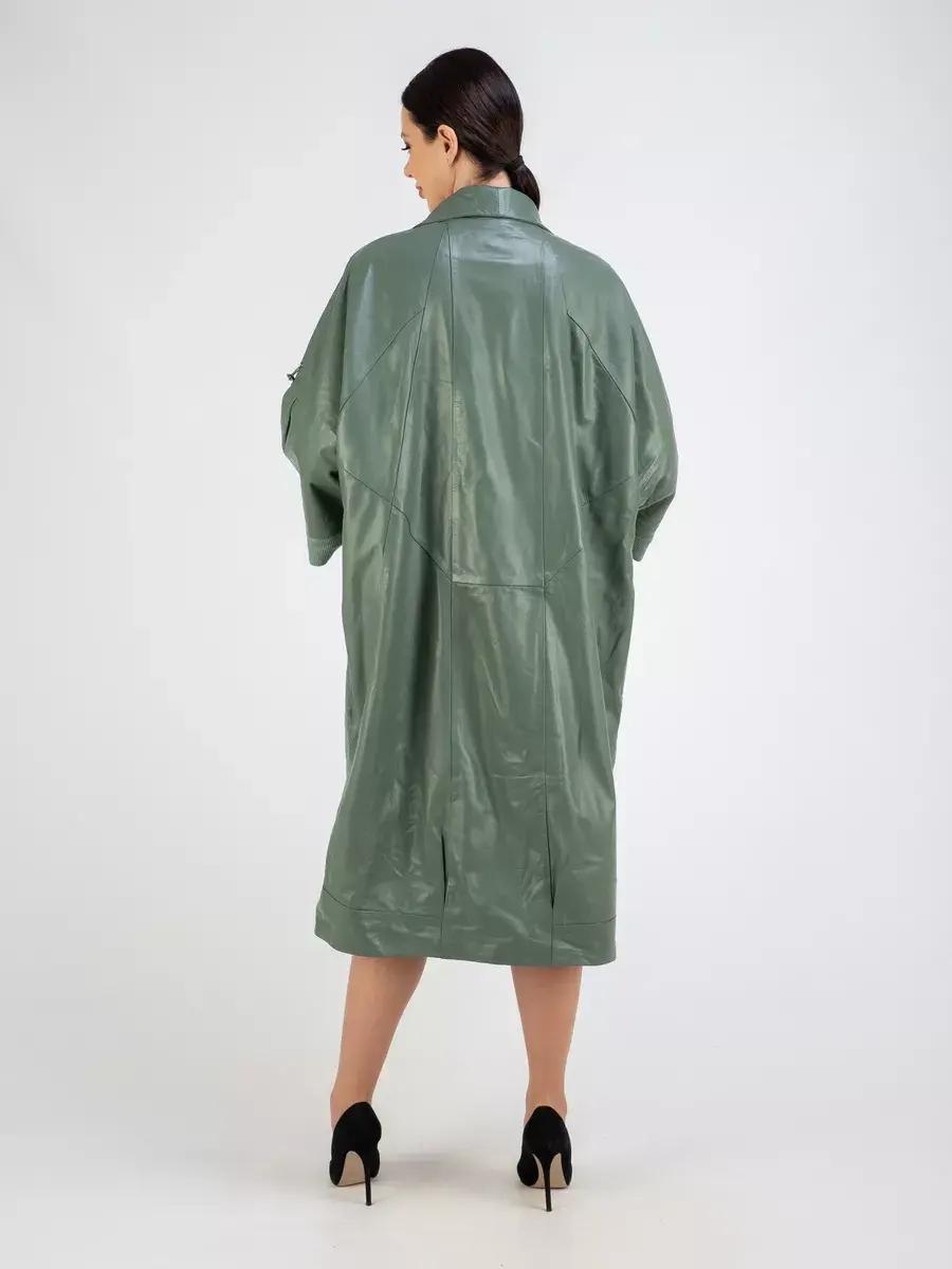 кожаный плащ женский длинный из натуральной кожи тренч,
