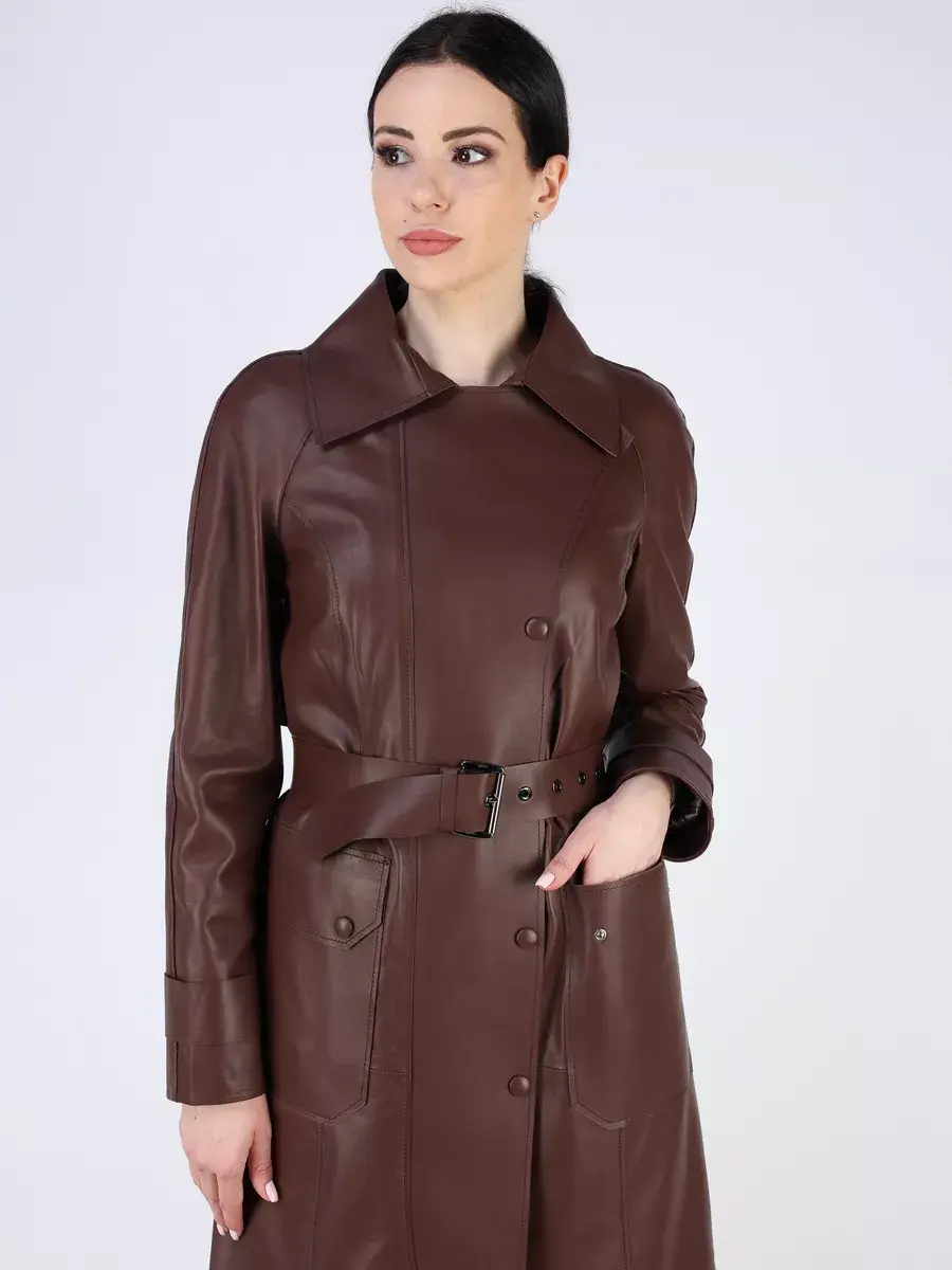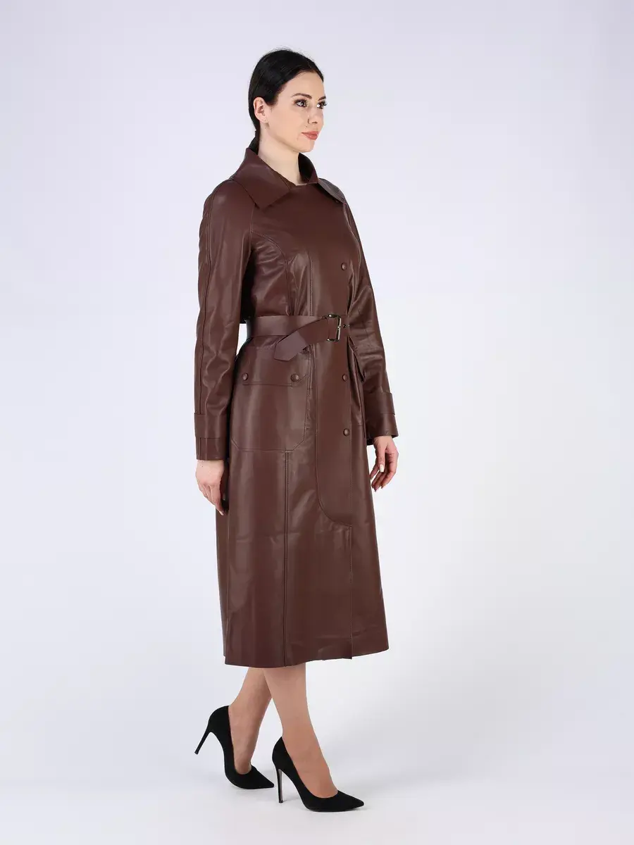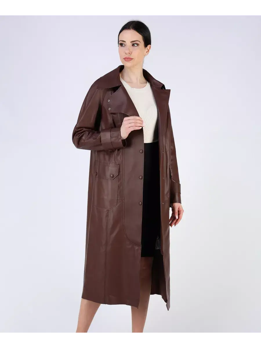 тренч женский длинный из натуральной кожи,