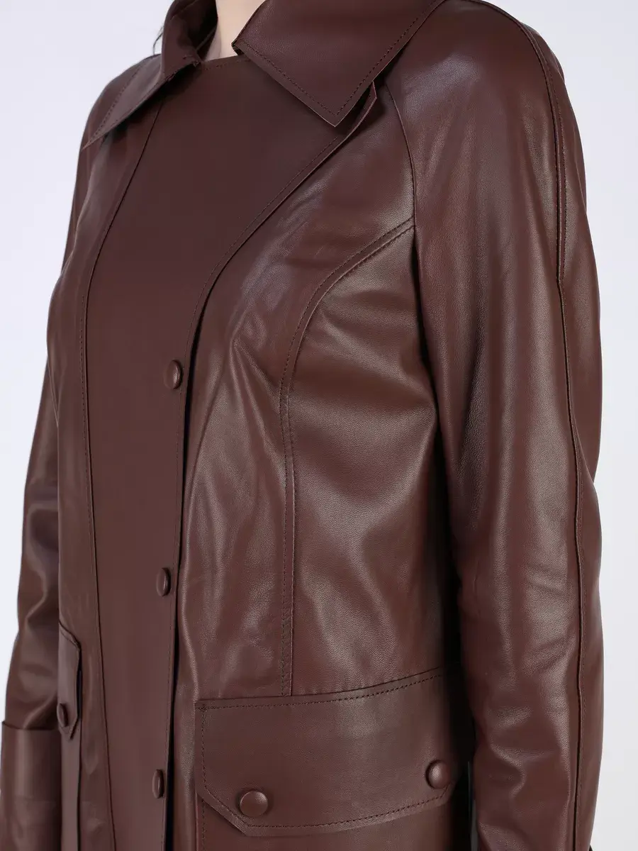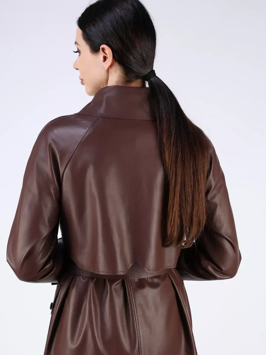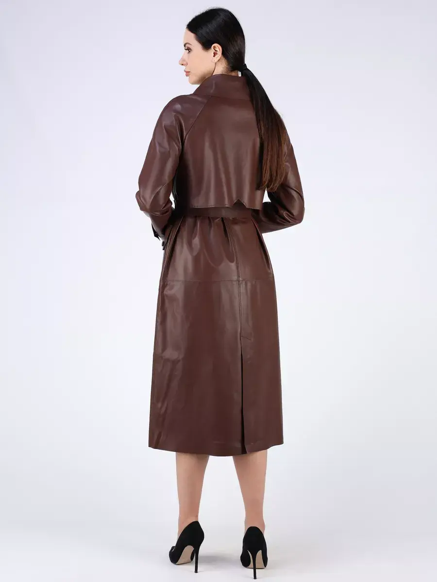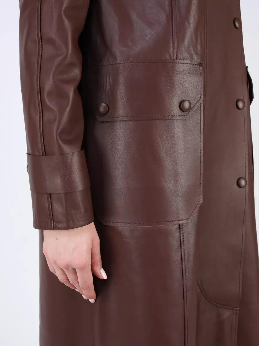 тренч женский длинный из натуральной кожи,
