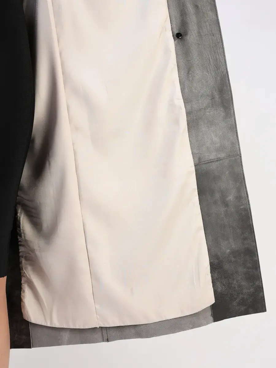 Каждая деталь этой модели пальто тренч выполнена с особым вниманием к качеству. Тренч кожаный женский плащ сшит из плотной и мягкой, непромокаемой и непродуваемой натуральной кожи. Кожаный плащ женский длинный дополнена кожаным поясом, который делает изделие прямого свободного кроя приталенным. Длинное пальто женское двубортное на весну и на осень без утеплителя застегивается на пуговицы.