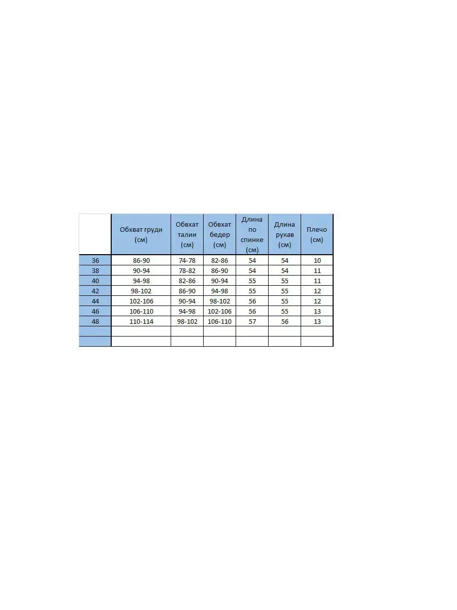 Длина изделия по спинке