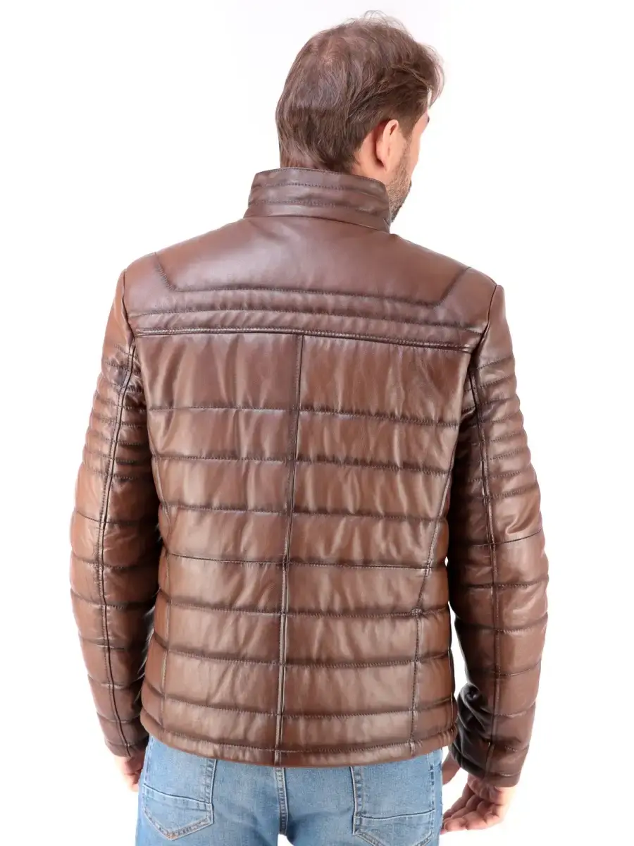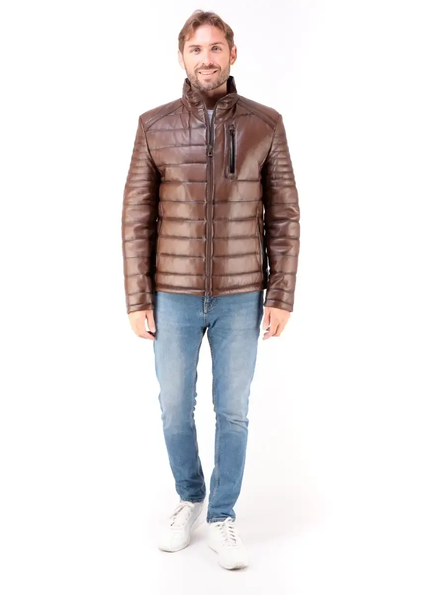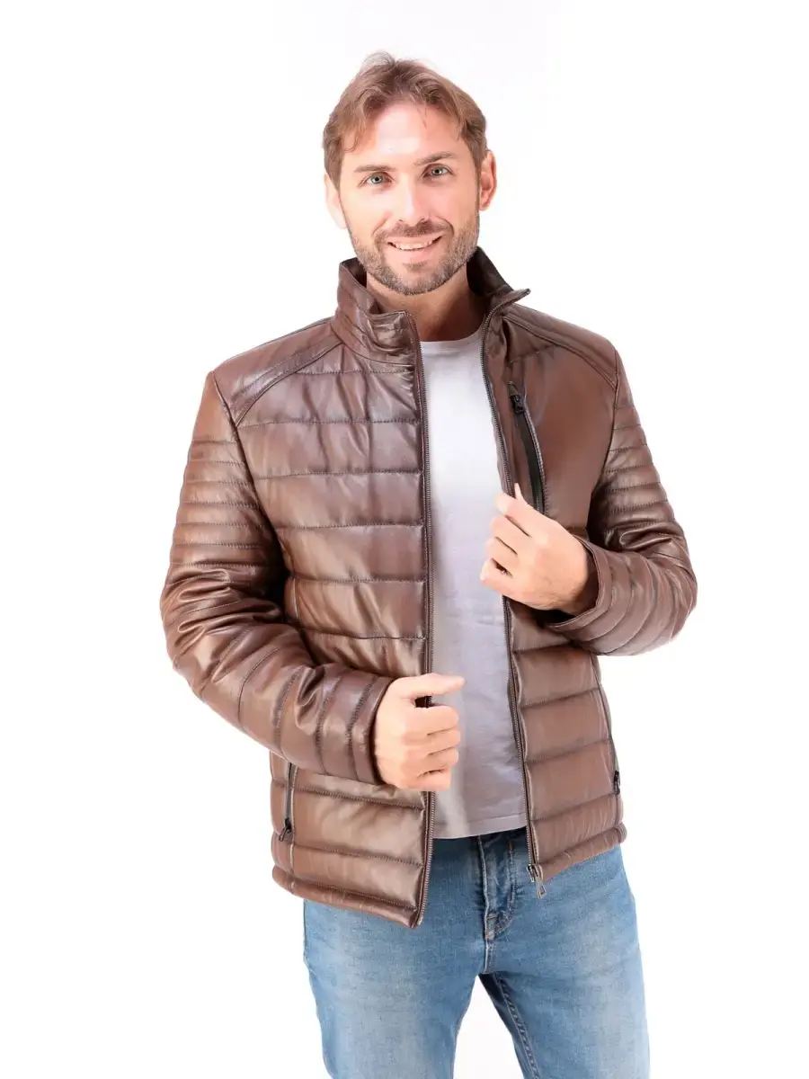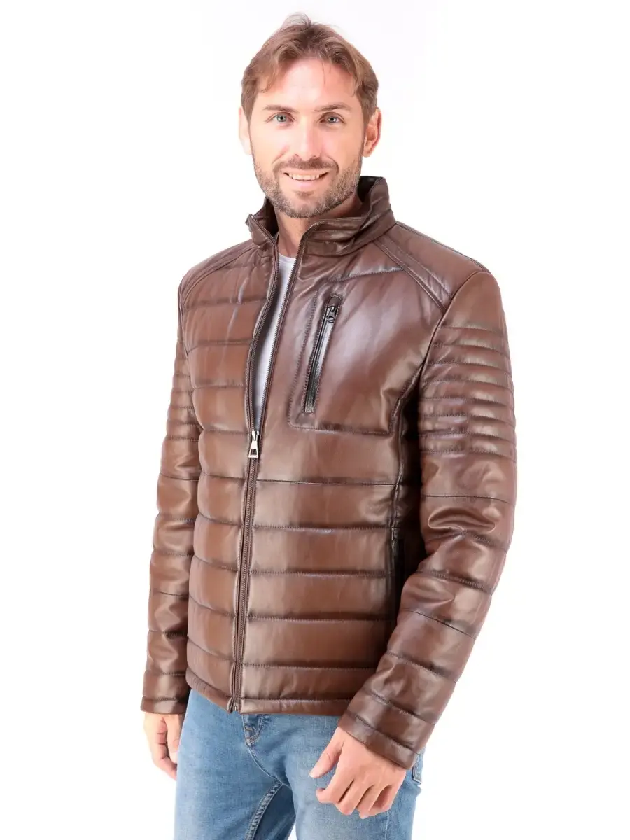 Мужская стеганая куртка из 100% высококачественной натуральной кожи ягненка. MONDIAL Производство Турция.