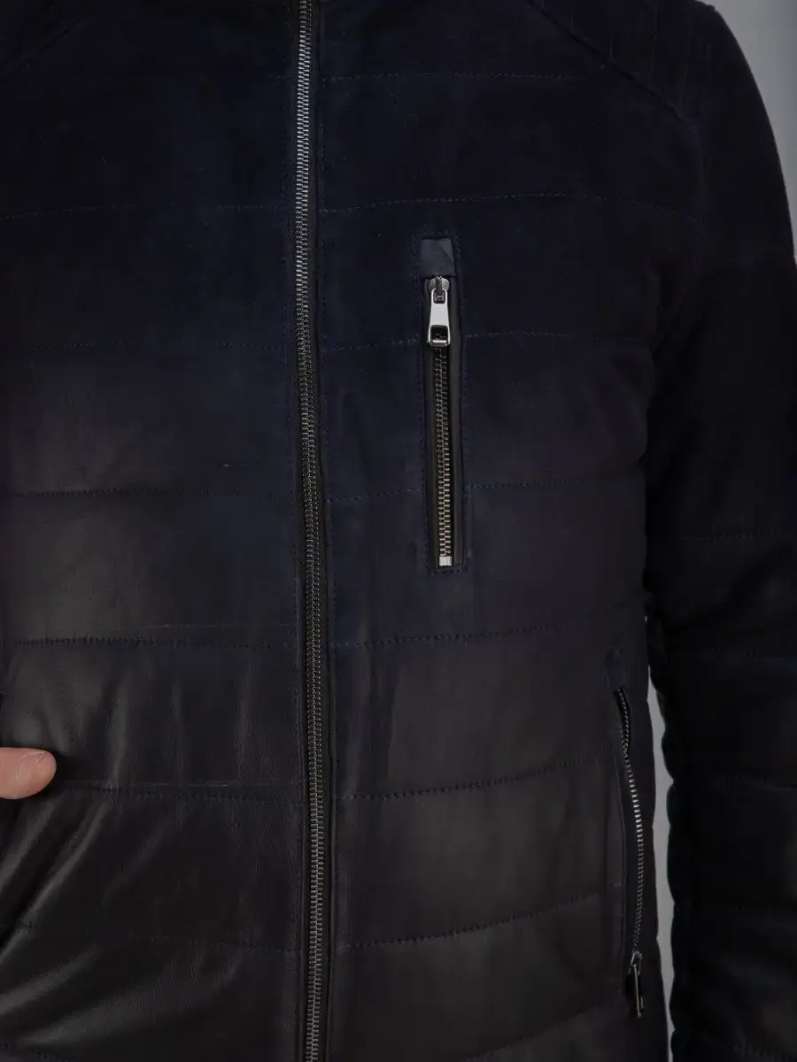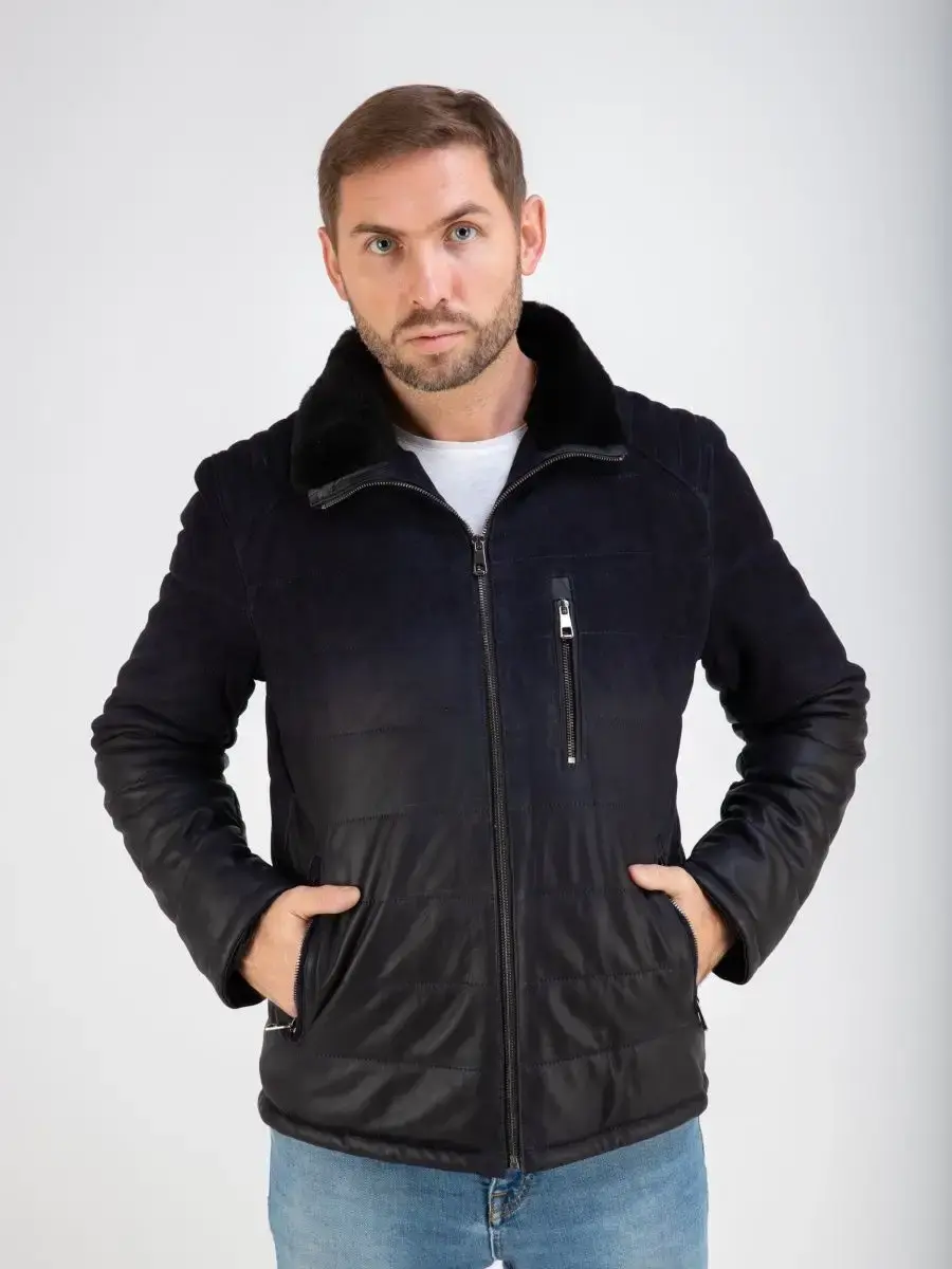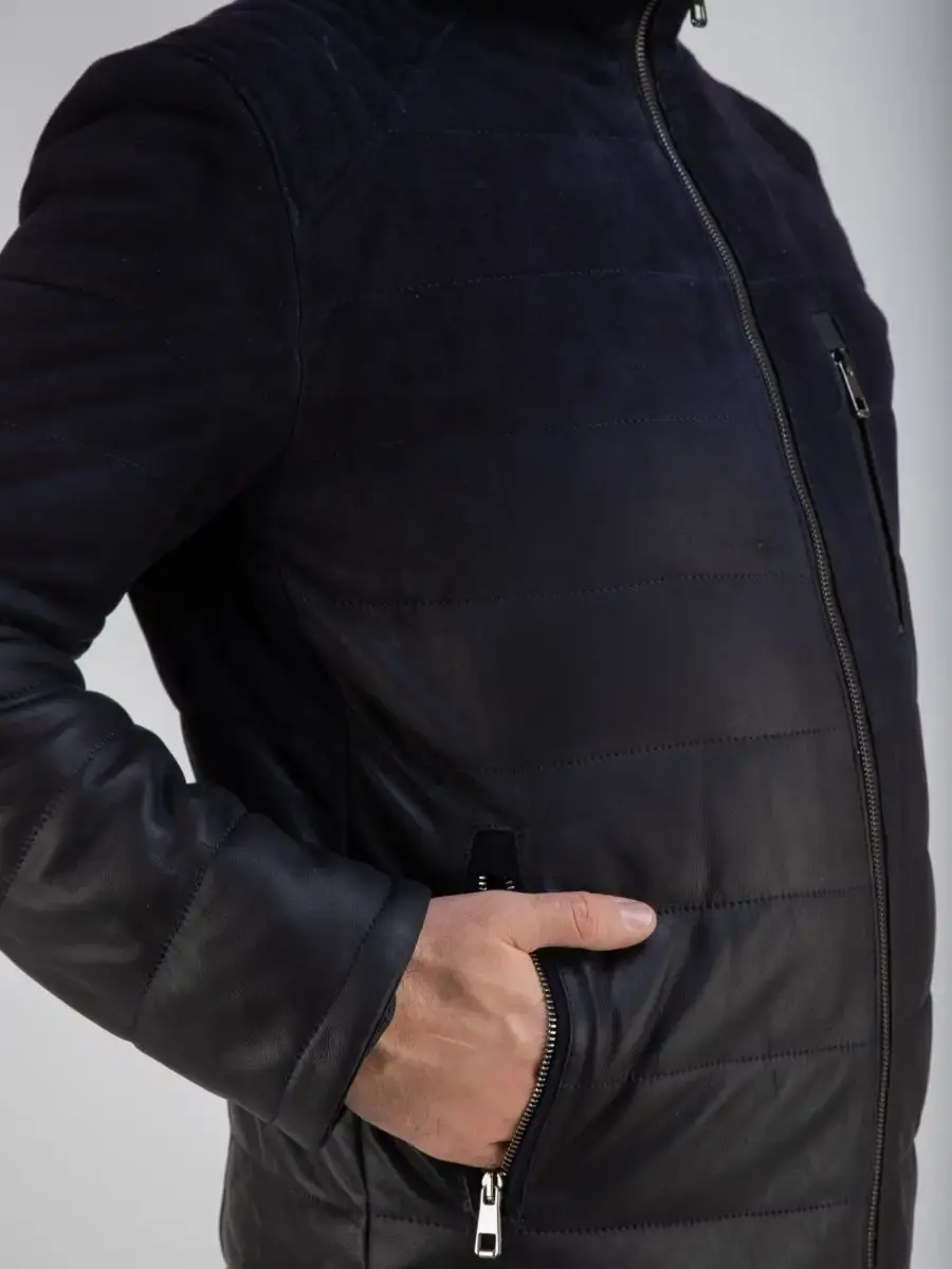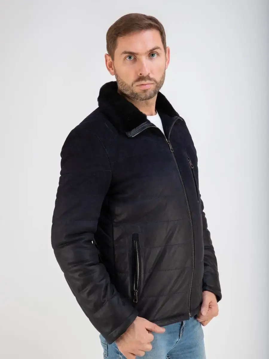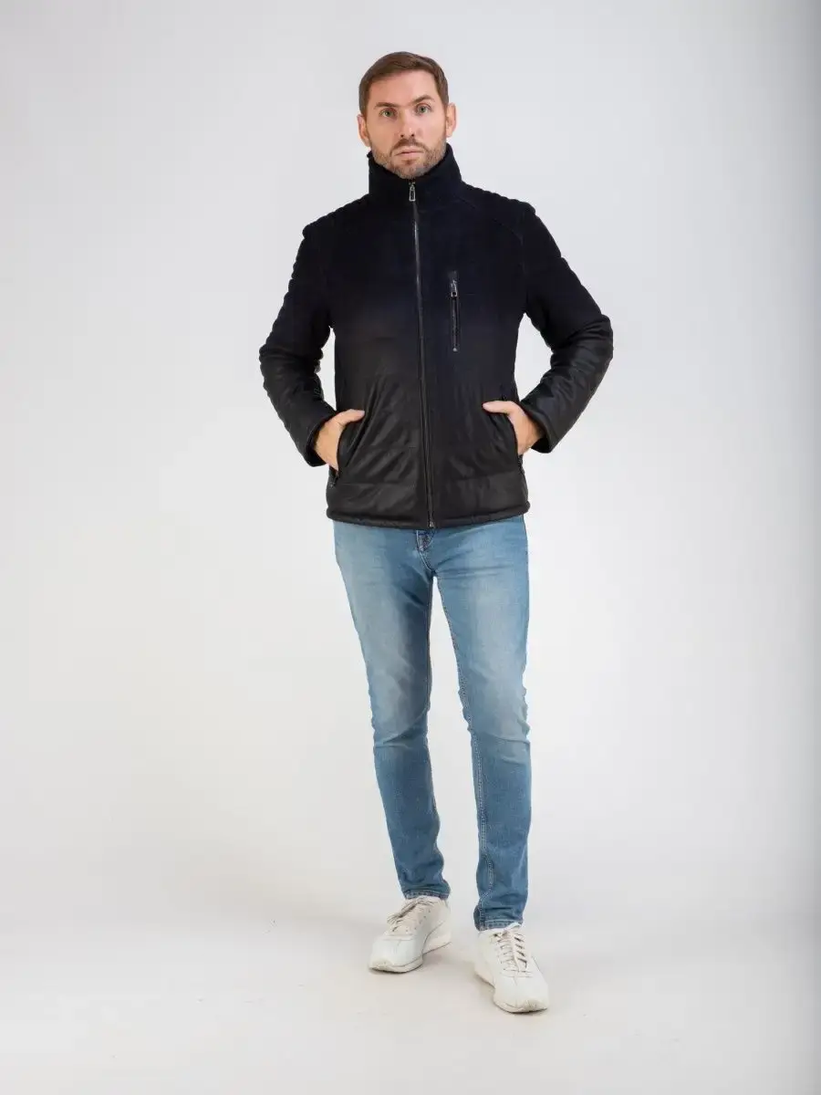 Куртка мужская демисезонная из натуральной кожи и замши ягненка, утепленная синтепоном, с вставкой из меха овчины на воротнике. Куртка мужская весна - осень стеганая прямого кроя, с застежкой на молнии, прорезные карманы на молнии , все это придает образу брутальность и деловой стиль. Куртка демисезонная достаточно удобная и практичная для ежедневного использования. Утепленная синтепоном стеганая мужская куртка из кожи и замша прекрасно защитит от ветра и дождя как зимой, весной и осенью так и в очень холодную погоду летом. Мужская куртка из натуральной кожи прекрасно будет смотреться как с кроссовками и спортивным стилем, так и с брюками и рубашкой.