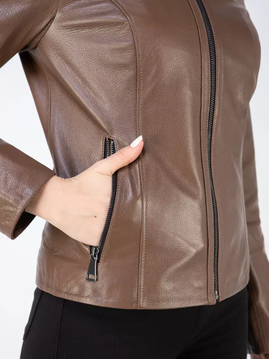 Куртка женская демисезонная кожаная из натуральной кожи прекрасно будет смотреться как с брюками, так и с джинсами, впишется практически в любой стиль - повседневный, городской, офисный и вечерний.