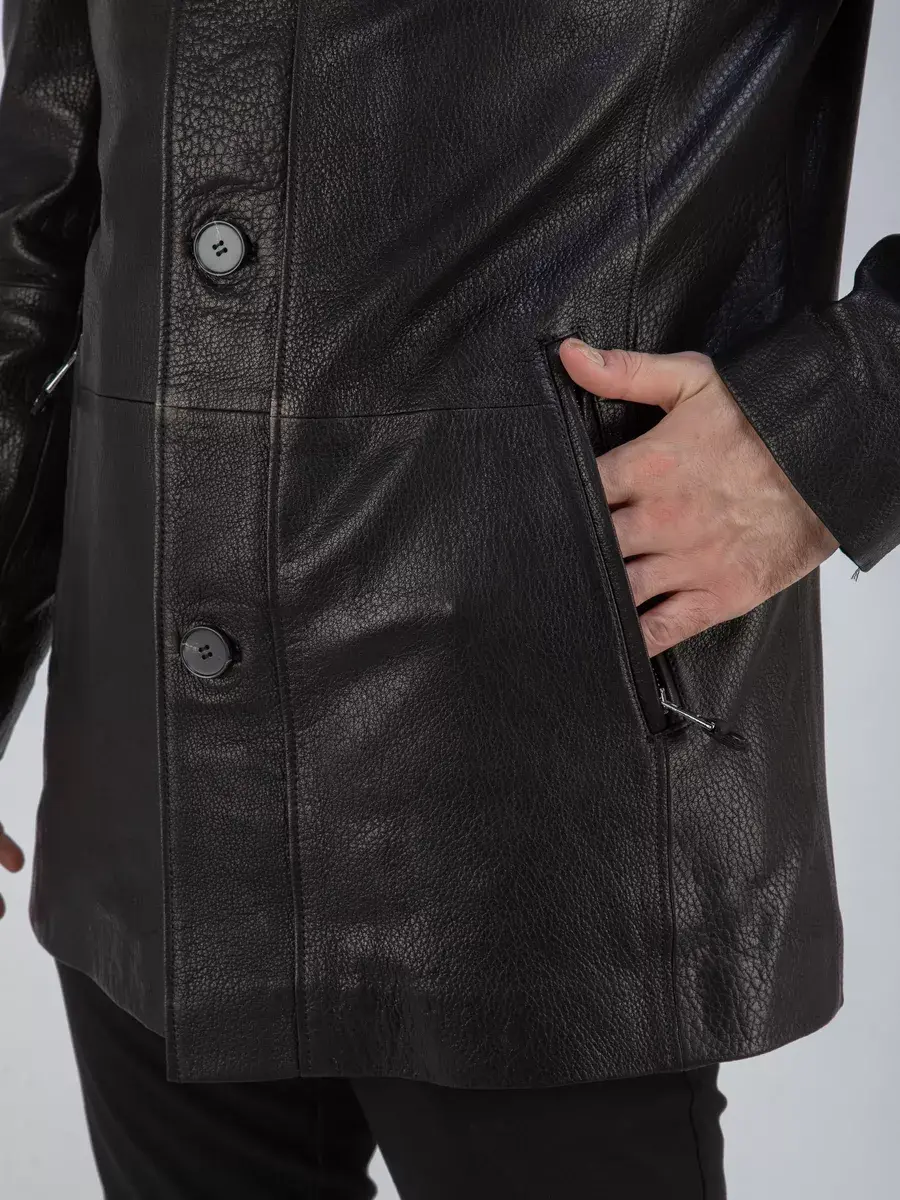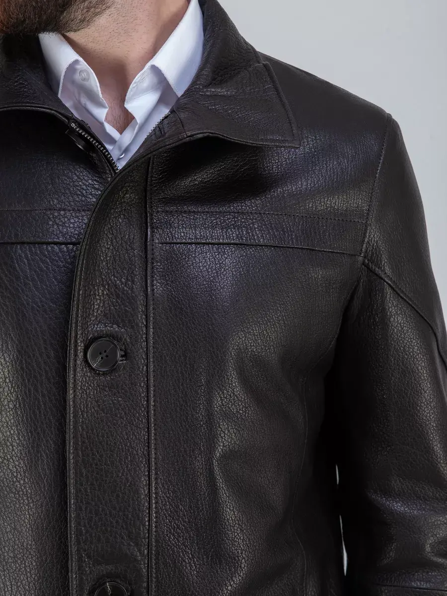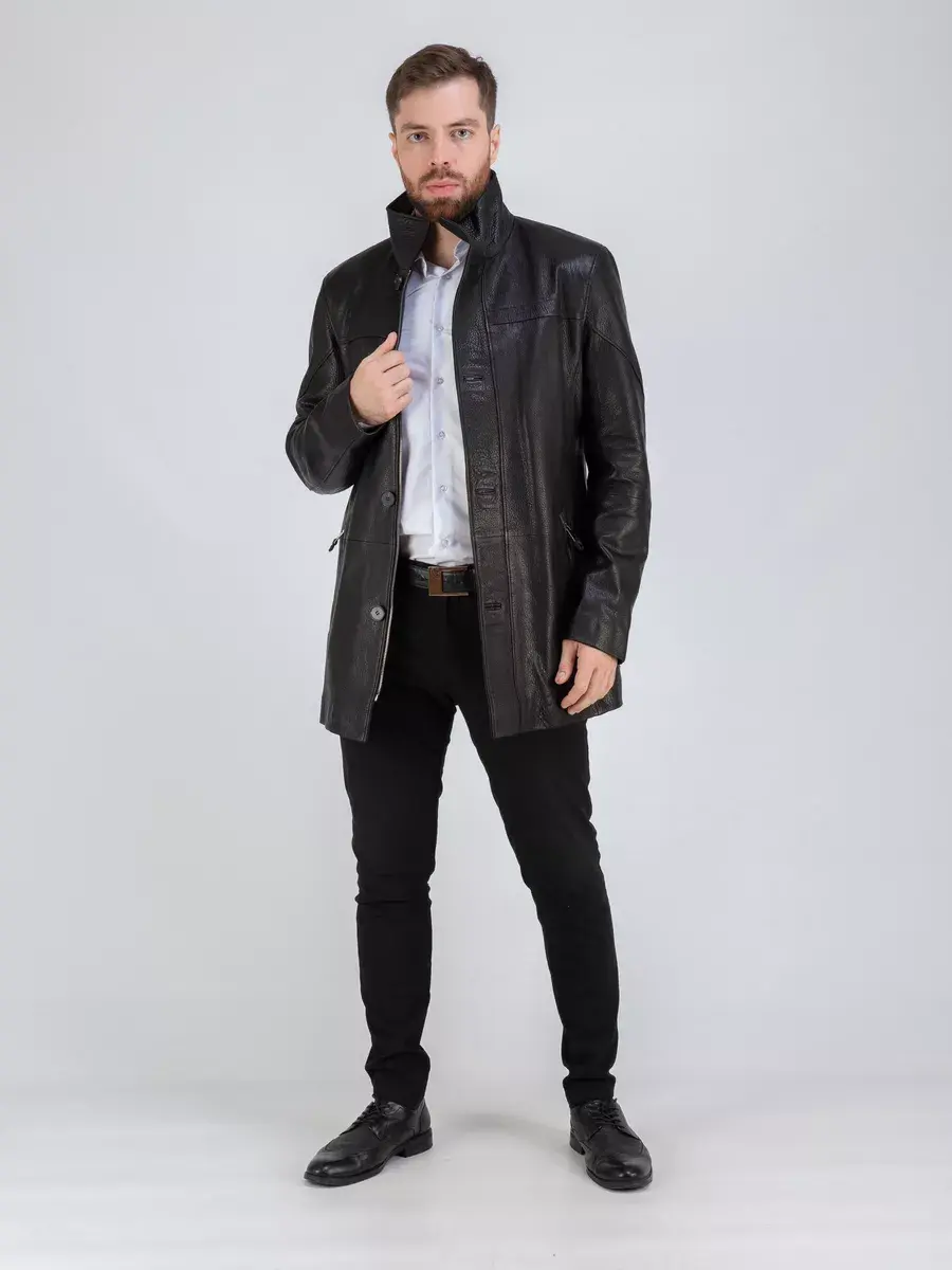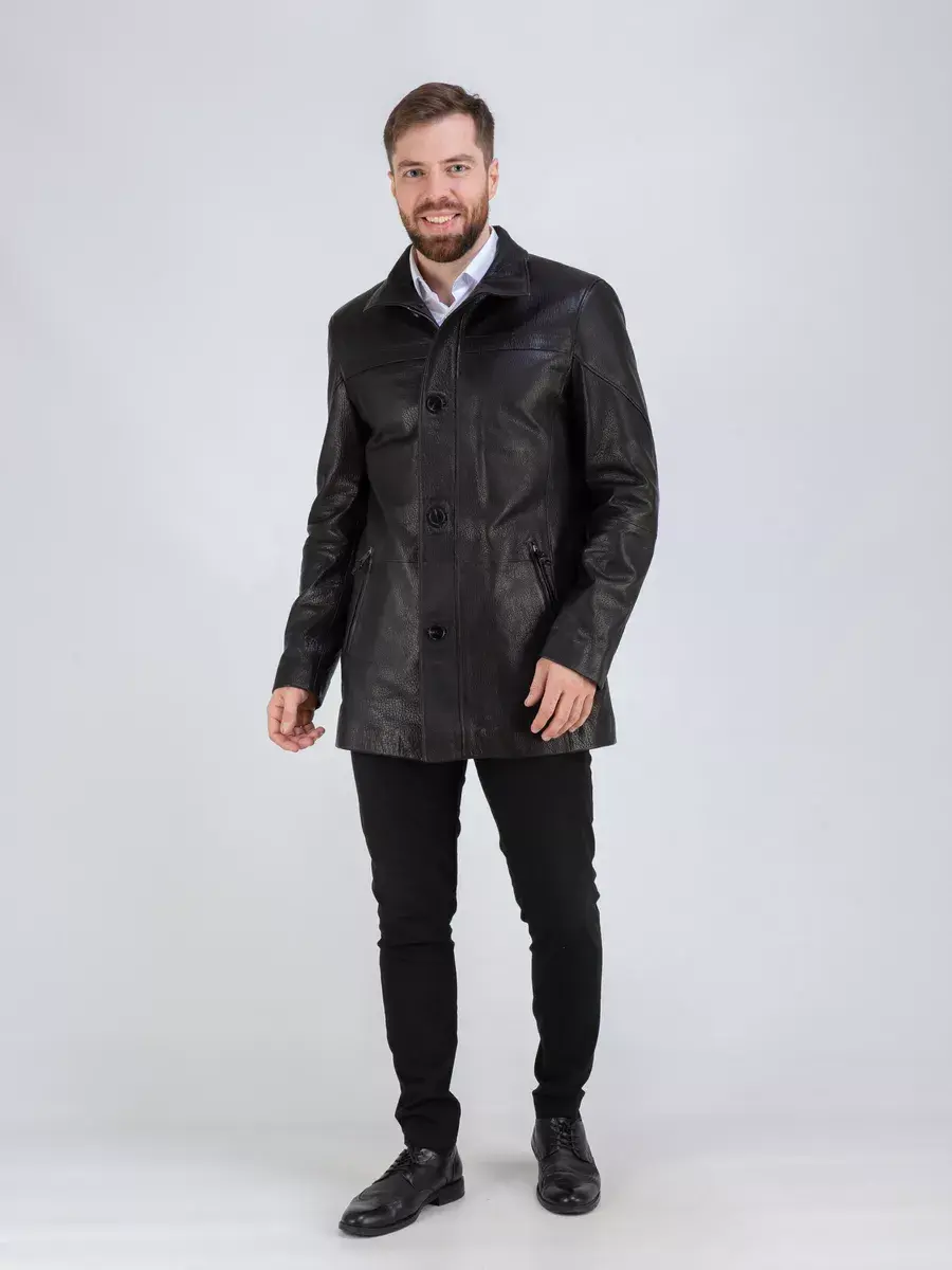 Мужская куртка кожаная имеет длину по спинке 83 см., что обеспечивает идеальное соотношение между длиной и защитой от холода, прекрасно подходить под классический стиль одежды. Стильный воротник, фактурная кожа придают куртке уникальность и изысканность, идеально впишется в деловой стиль и дополнит солидный образ мужчины или парня подростка, независимо от возраста. Двойная застежка на молнии и на пуговицах обеспечивает легкость и удобство в использовании, а прорезные карманы на молнии дополнительно увеличивают функциональность куртки. Эта куртка - отличный выбор для тех, кто ценит качество и стиль.
