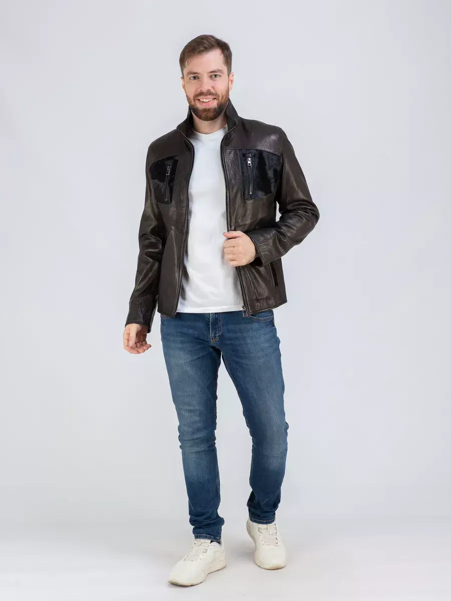 Модная куртка мужская кожаная демисезонная из натуральной кожи - это стильная и практичная верхняя одежда, идеально подходящая для осени и весны. Кожаная куртка изготовлена из высококачественной натуральной кожи ягненка, эта мужская куртка обеспечивает комфорт и долговечность. Выделка кожи фактурная, износоустойчивая к царапинам и воздействию окружающей среды поэтому дольше сохраняет отличный внешний вид. Куртка мужская кожаная имеет длину по спинке 70 см. Стильная стойка воротник и декоративные вставки из меха придают куртке уникальность и изысканность. Застежка на молнии обеспечивает легкость и удобство в использовании, а прорезные карманы дополнительно увеличивают функциональность куртки. Эта куртка - отличный выбор для тех, кто ценит качество и стиль. Качество кожи гарантирует ее долговечность и устойчивость к носке. Сочетание дизайна с долговечностью, драгоценностью и мягкостью натуральной кожи делает мужские кожаные куртки идеальным предметом мужской одежды. Куртка достаточно удобная и практичная для ежедневного использования. Куртка мужская демисезонная из натуральной кожи прекрасно будет смотреться как с кроссовками и спортивным стилем, так и с брюками и рубашкой, впишется практически в любой стиль - повседневный, городской, офисный и вечерний. Вы можете купить куртки мужские, бомбер, косухи, короткие куртки в подарок со скидкой на странице бренда! В наличии широкая размерная сетка включающая большие размеры, чтобы каждый мог найти свой идеальный вариант комфортной одежды.