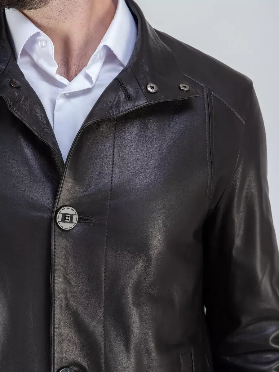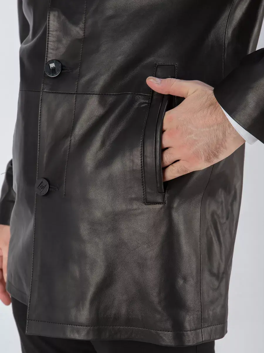 Удлиненная куртка мужская кожаная демисезонная из натуральной кожи - это стильная и практичная верхняя одежда, идеально подходящая для осени и весны. Кожаная куртка изготовлена из высококачественной натуральной кожи ягненка, эта мужская куртка обеспечивает комфорт и долговечность. Выделка кожи гладкая, износоустойчивая к царапинам и воздействию окружающей среды поэтому дольше сохраняет отличный внешний вид. Куртка мужская кожаная имеет длину по спинке 85 см., что обеспечивает идеальное соотношение между длиной и защитой от холода, прекрасно подходить под классический стиль одежды. Стильный воротник стойка на кнопках, гладкая кожа придают куртке уникальность и изысканность, идеально впишется в деловой стиль и дополнит солидный образ мужчины или парня подростка, независимо от возраста. Застежка на пуговицах обеспечивает легкость и удобство в использовании, а прорезные карманы и шлица дополнительно увеличивают функциональность и практичность куртки. Эта куртка - отличный выбор для тех, кто ценит качество и стиль. Куртка произведена в Турции, стране с богатой историей производства кожаной одежды. Благодаря опыту и мастерству турецких производителей, эта куртка обладает высочайшим качеством и сочетает в себе стиль и надежность. Качество кожи гарантирует ее долговечность и устойчивость к носке. Сочетание дизайна с долговечностью, драгоценностью и мягкостью натуральной кожи делает мужские кожаные куртки идеальным предметом мужской одежды. Куртка достаточно удобная и практичная для ежедневного использования. Куртка мужская демисезонная из натуральной кожи прекрасно будет смотреться как с кроссовками и спортивным стилем, так и с брюками, с костюмом и рубашкой, впишется практически в любой стиль - повседневный, городской, офисный и вечерний. Вы можете купить куртки мужские, бомбер, косухи, короткие куртки в подарок со скидкой на странице бренда!