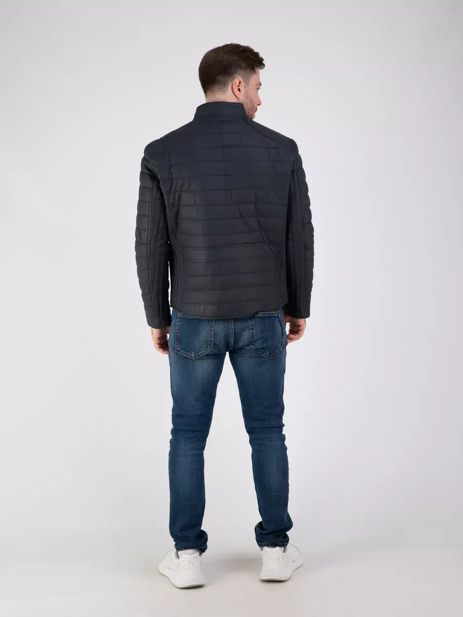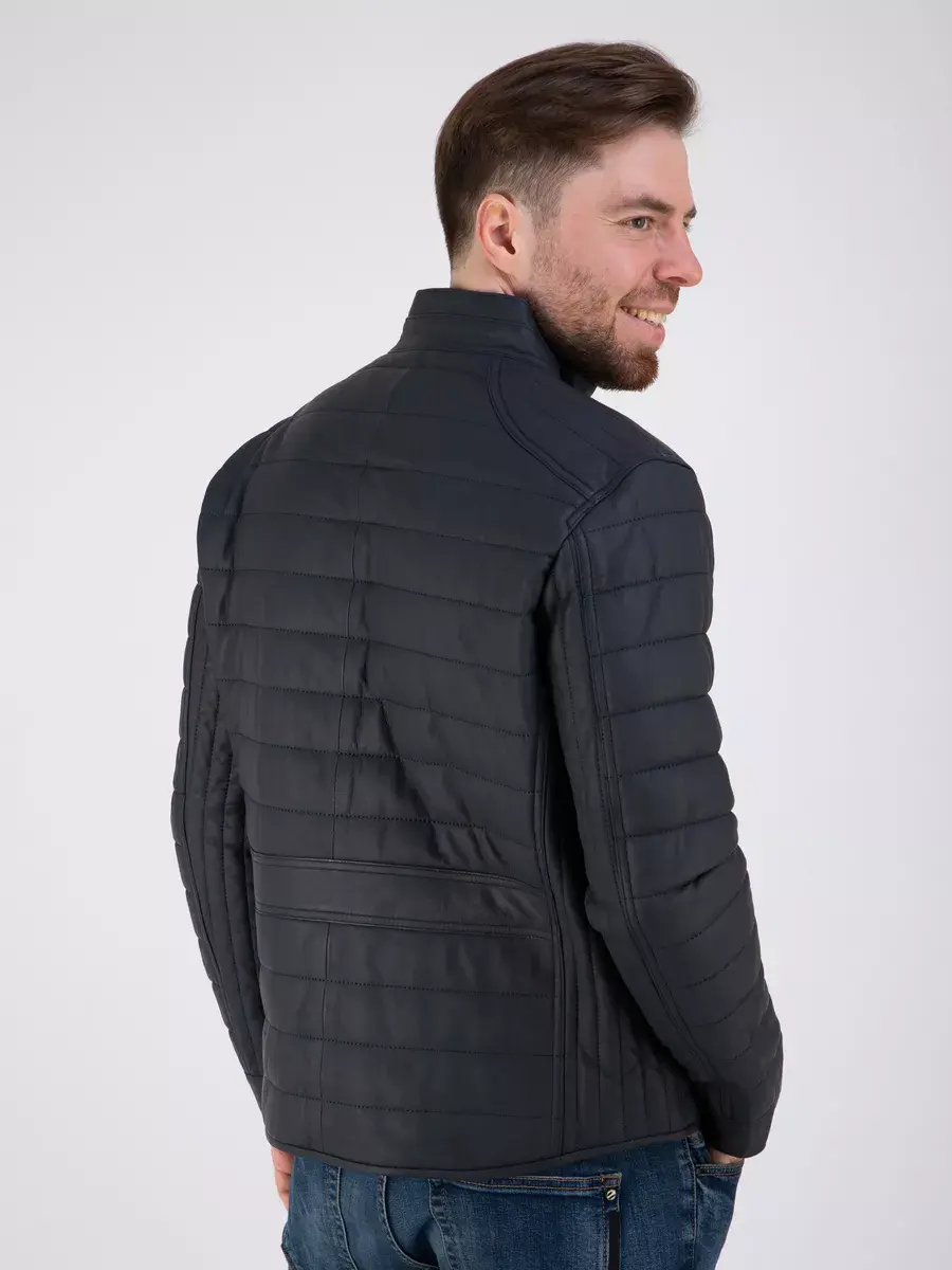 стойка воротник, стеганая куртка, утепленная, куртка мужская демисезонная кожаная