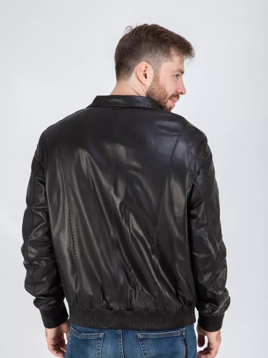 декоративная строчка, воротник стойка, куртка натуральная кожаная мужская манжет