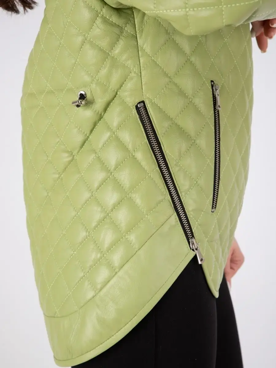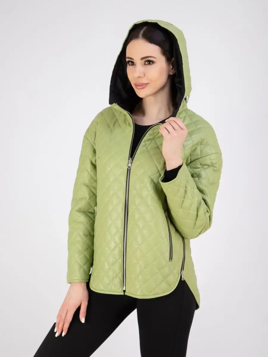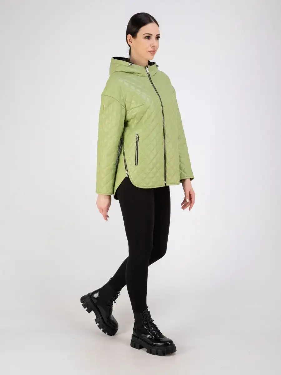 Оригинальная двухсторонняя куртка бренда MONDIAL создана с использованием комбинированных материалов. Одна из ее сторон выполнена из натуральной кожи, а вторая является тканевой. За счет таких особенностей, эту верхнюю одежду можно смело назвать универсальной и многофункциональной. Она обладает комфортным свободным кроем и стильным видом. Брендовая стеганая курточка с удлиненной спинкой оснащена капюшоном и вместительными карманами, элегантно подчеркивает силуэт и не сковывает движения. Эта кожанка с длинными рукавами сочетает в себе преимущества классики и модных трендов. Она представлена в нашей эксклюзивной коллекции в классическом черном и эстетичном зеленом цвете. Вещь предложена в разных размерах, включая плюс сайз. Она займет почетное место в базовом гардеробе взрослых женщин и девочек - подростков. Курточка из непромокаемой мягкой кожи премиум - качества идеальна для холодной весенней и осенней погоды. Такая межсезонная модель легко дополнит наряд в классическом офисном и молодежном casual (кэжуал) стиле. Она красиво садится по фигуре девушек высокого и невысокого роста, позволит создать поистине крутые образы, не лишаясь при этом комфорта. Эта верхняя одежда непременно будет активно использоваться в повседневной жизни и надолго сохранит изначальный вид. Она не вызывает сложностей в уходе, отличается прочностью и долговечностью. Ее даже можно рассмотреть в виде необычной и классной подарочной идеи для всех дорогих сердцу дам. Милый презент вполне уместно вручить на день рождения и юбилей, годовщину отношений или свадьбы и абсолютно любой другой без исключения праздник. Он явно при этом не останется без внимания. Длина по спинке 75см. Страна производства - Турция. У нас есть акции и распродажи, вы можете купить наши товары в подарок со скидкой!