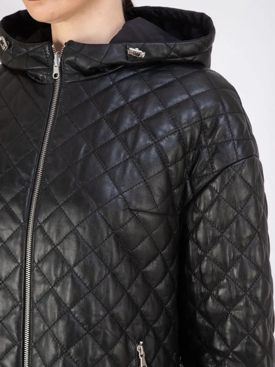 Оригинальная двухсторонняя куртка бренда MONDIAL создана с использованием комбинированных материалов. Одна из ее сторон выполнена из натуральной кожи, а вторая является тканевой. За счет таких особенностей, эту верхнюю одежду можно смело назвать универсальной и многофункциональной. Она обладает комфортным свободным кроем и стильным видом. Брендовая стеганая курточка с удлиненной спинкой оснащена капюшоном и вместительными карманами, элегантно подчеркивает силуэт и не сковывает движения. Эта кожанка с длинными рукавами сочетает в себе преимущества классики и модных трендов. Она представлена в нашей эксклюзивной коллекции в классическом черном и эстетичном зеленом цвете. Вещь предложена в разных размерах, включая плюс сайз. Она займет почетное место в базовом гардеробе взрослых женщин и девочек - подростков. Курточка из непромокаемой мягкой кожи премиум - качества идеальна для холодной весенней и осенней погоды. Такая межсезонная модель легко дополнит наряд в классическом офисном и молодежном casual (кэжуал) стиле. Она красиво садится по фигуре девушек высокого и невысокого роста, позволит создать поистине крутые образы, не лишаясь при этом комфорта. Эта верхняя одежда непременно будет активно использоваться в повседневной жизни и надолго сохранит изначальный вид. Она не вызывает сложностей в уходе, отличается прочностью и долговечностью. Ее даже можно рассмотреть в виде необычной и классной подарочной идеи для всех дорогих сердцу дам. Милый презент вполне уместно вручить на день рождения и юбилей, годовщину отношений или свадьбы и абсолютно любой другой без исключения праздник. Он явно при этом не останется без внимания. Длина по спинке 75см. Страна производства - Турция. У нас есть акции и распродажи, вы можете купить наши товары в подарок со скидкой!