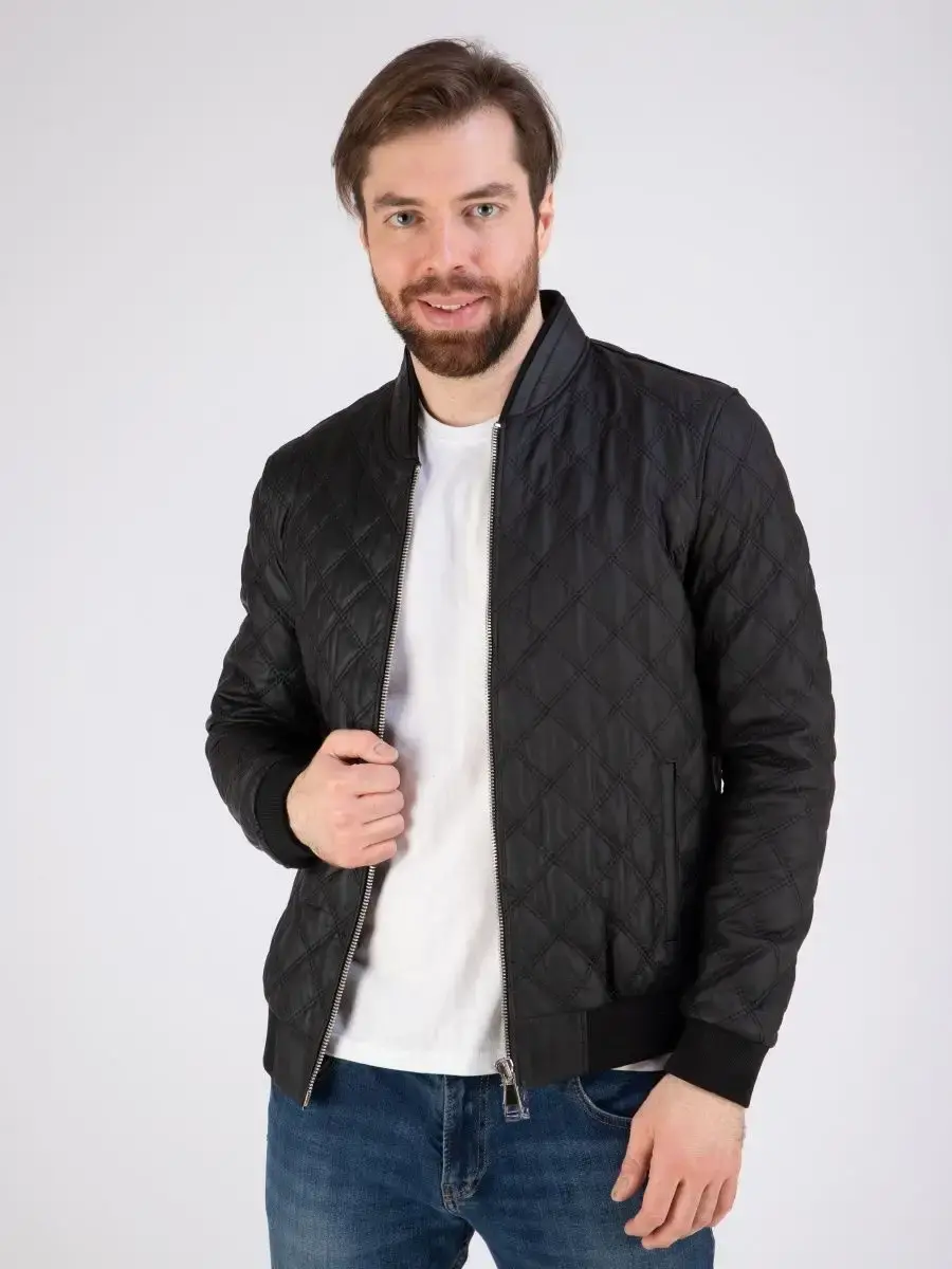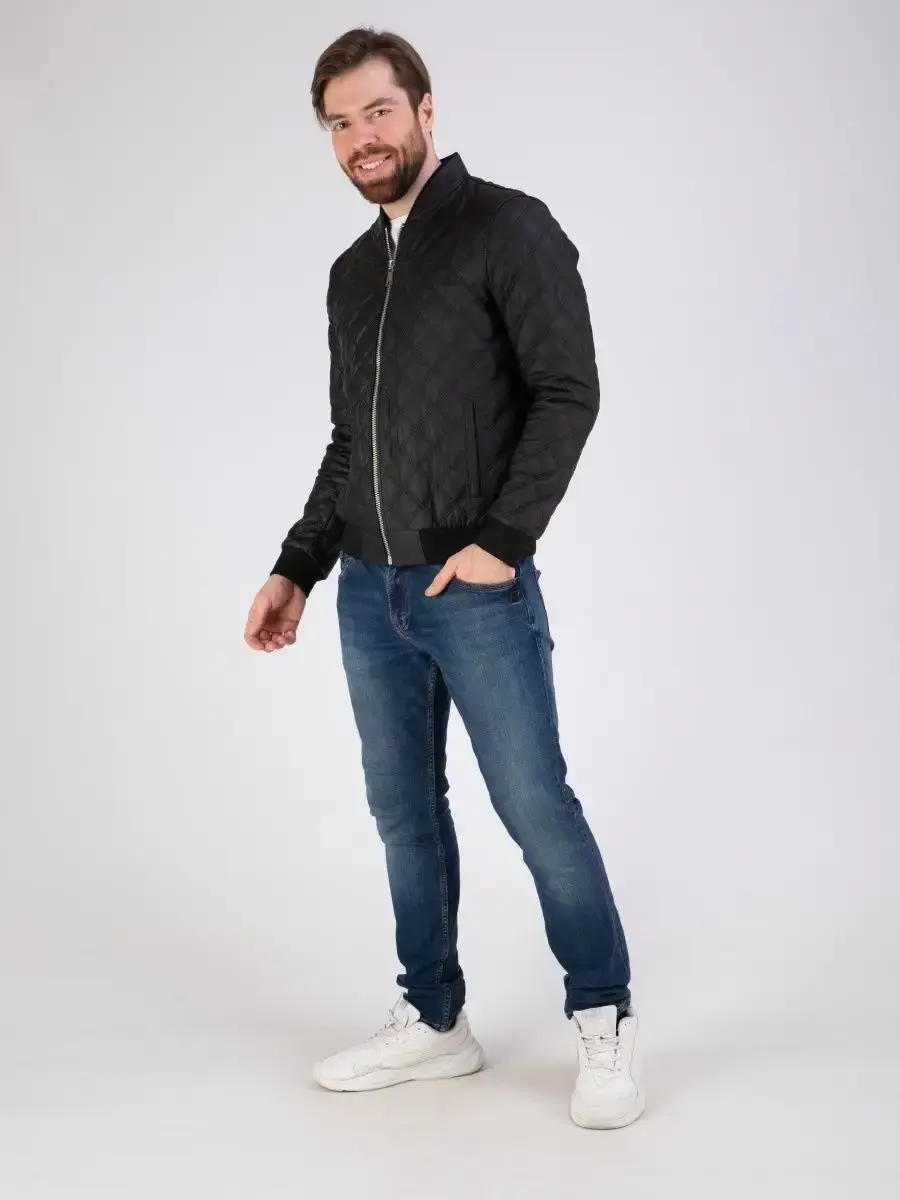 стеганая, трикотажный манжет. куртка мужская весна, кожаная куртка, бомбер мужской