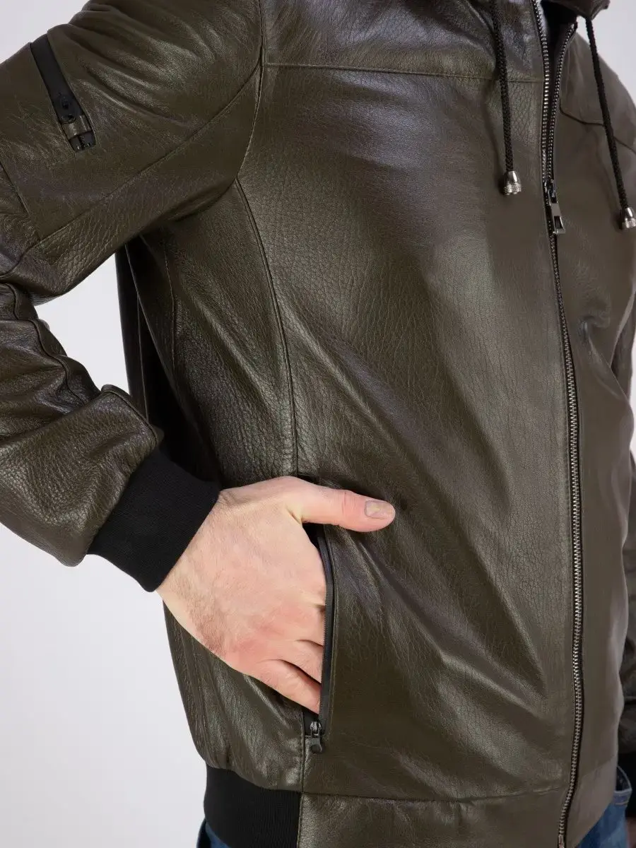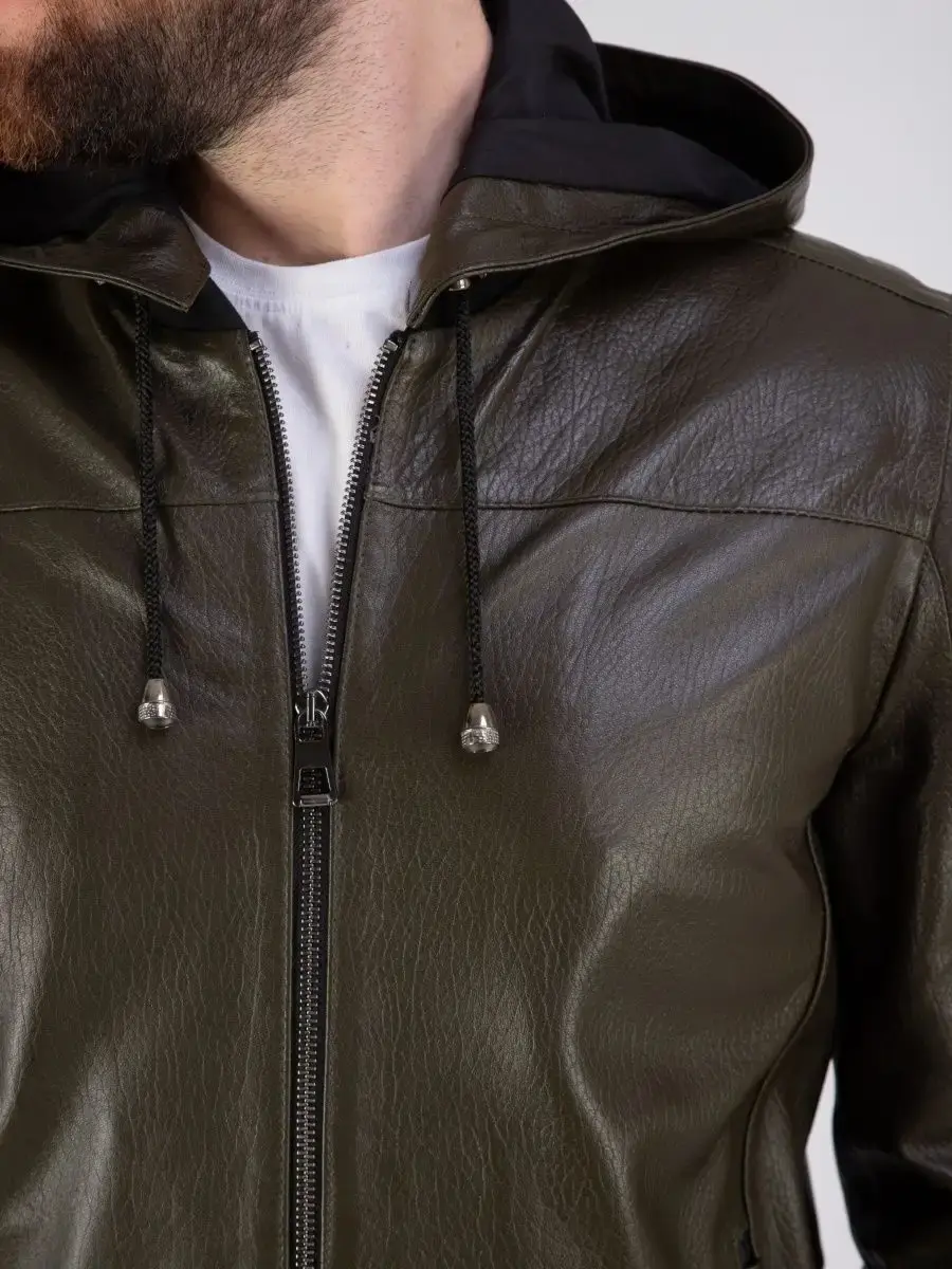 Мужская куртка спортивная с капюшоном выполнена из прочной и в то же время из мягкой натуральной кожи ягненка, которая обеспечивает комфорт и долговечность. Кожа износоустойчивая к царапинам и воздействию окружающей среды поэтому дольше сохраняет отличный внешний вид.